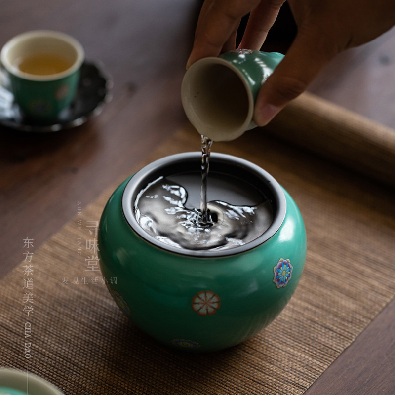 雅致皮球花建水|简约小号陶瓷茶洗水盂带盖茶渣桶干泡茶具茶水缸