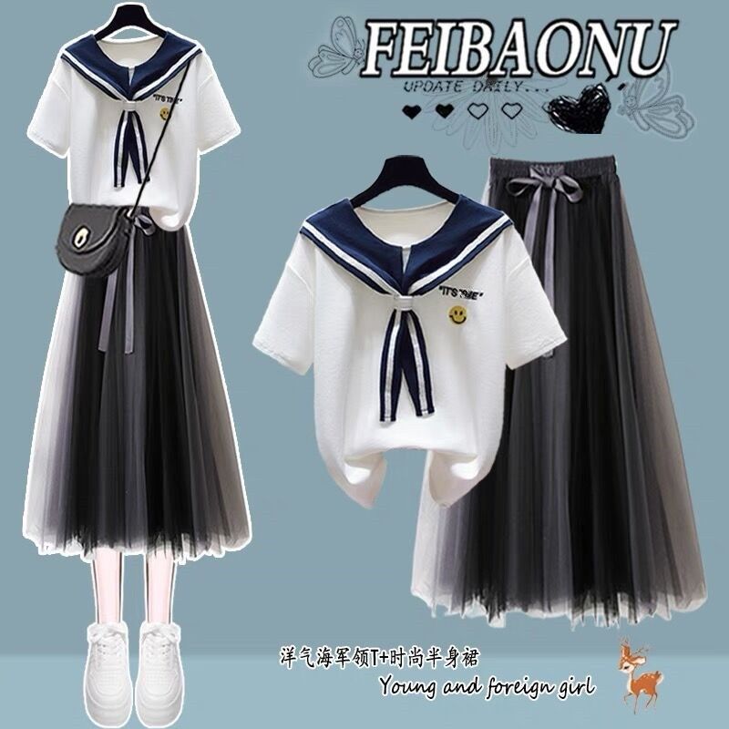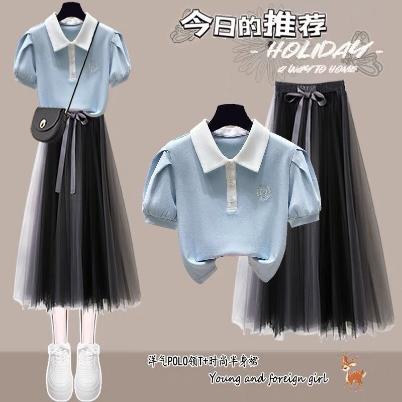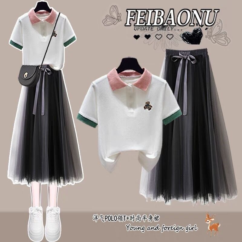 大童连衣裙夏装女1215岁x初中学生半身裙少女网纱裙高中生两件套