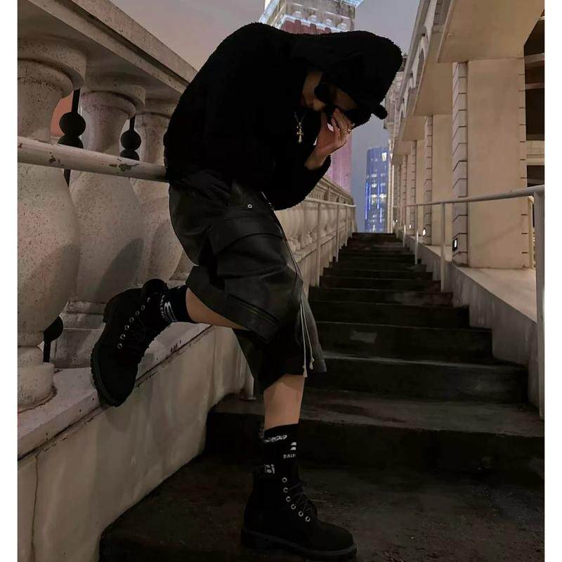R风24新款皮质短裤高腰显瘦