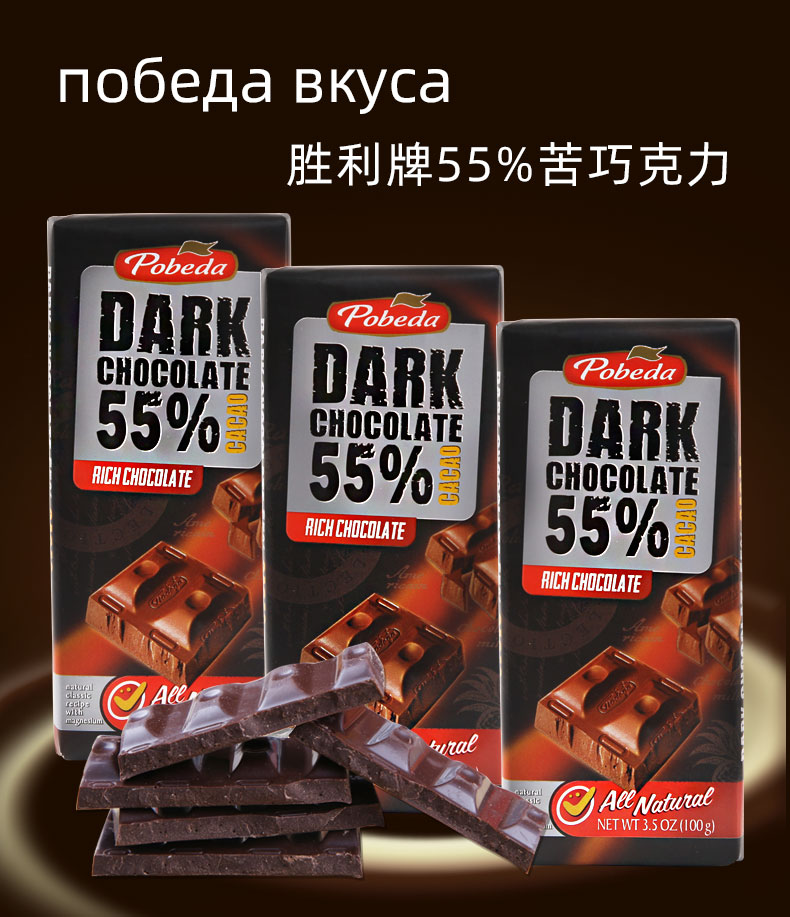 进口俄罗斯黑巧克力胜利牌72%纯可可脂苦味健身原装正品零食包邮