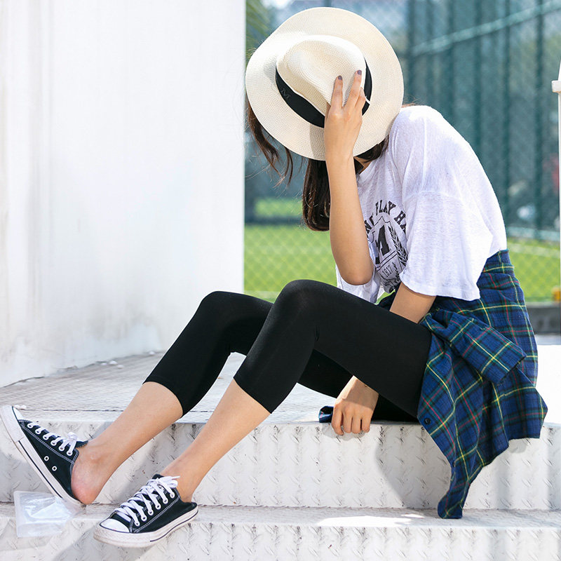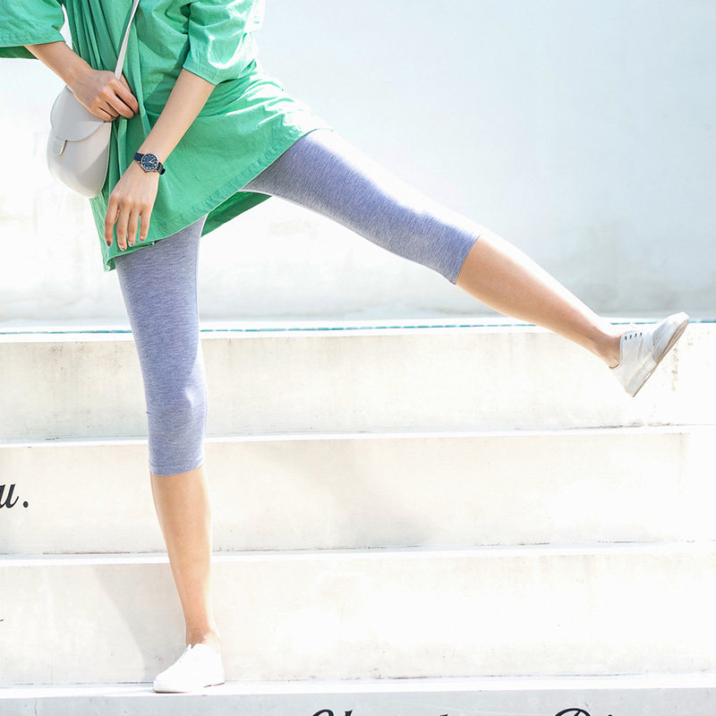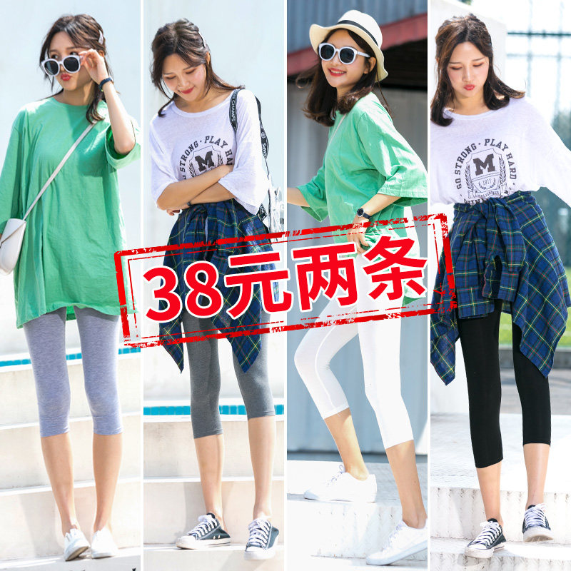 打底裤女夏季外穿薄款莫代尔加肥加大七分裤浅灰色显瘦紧身小脚裤