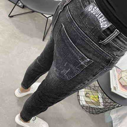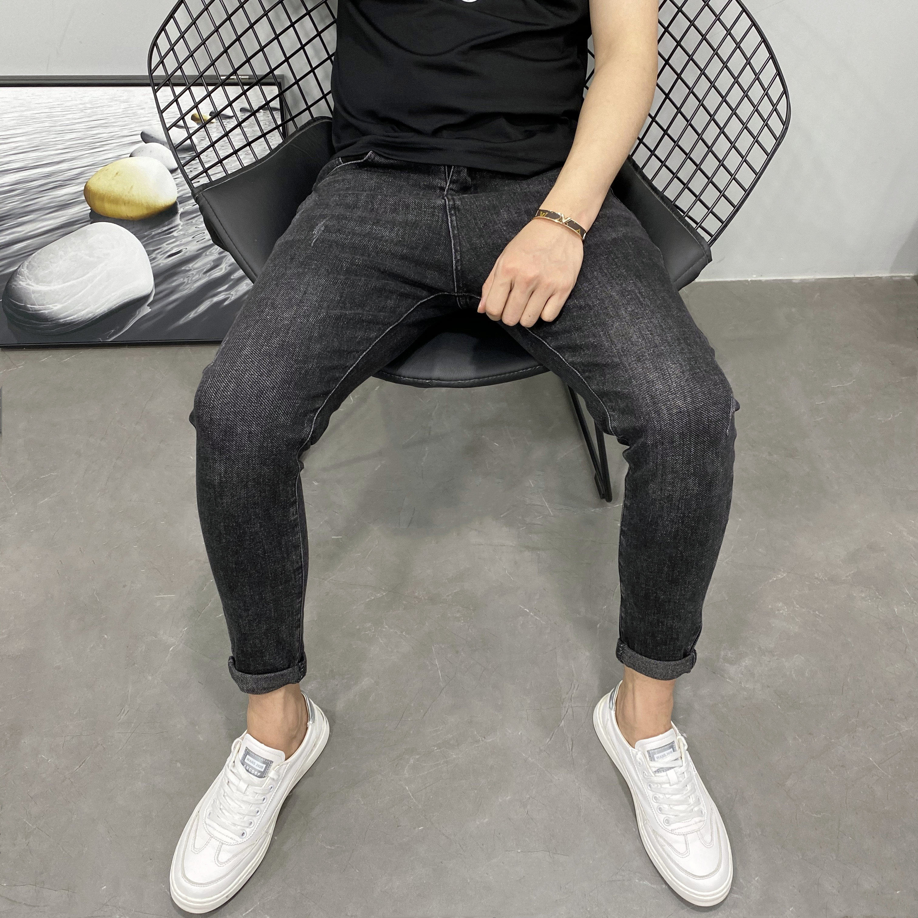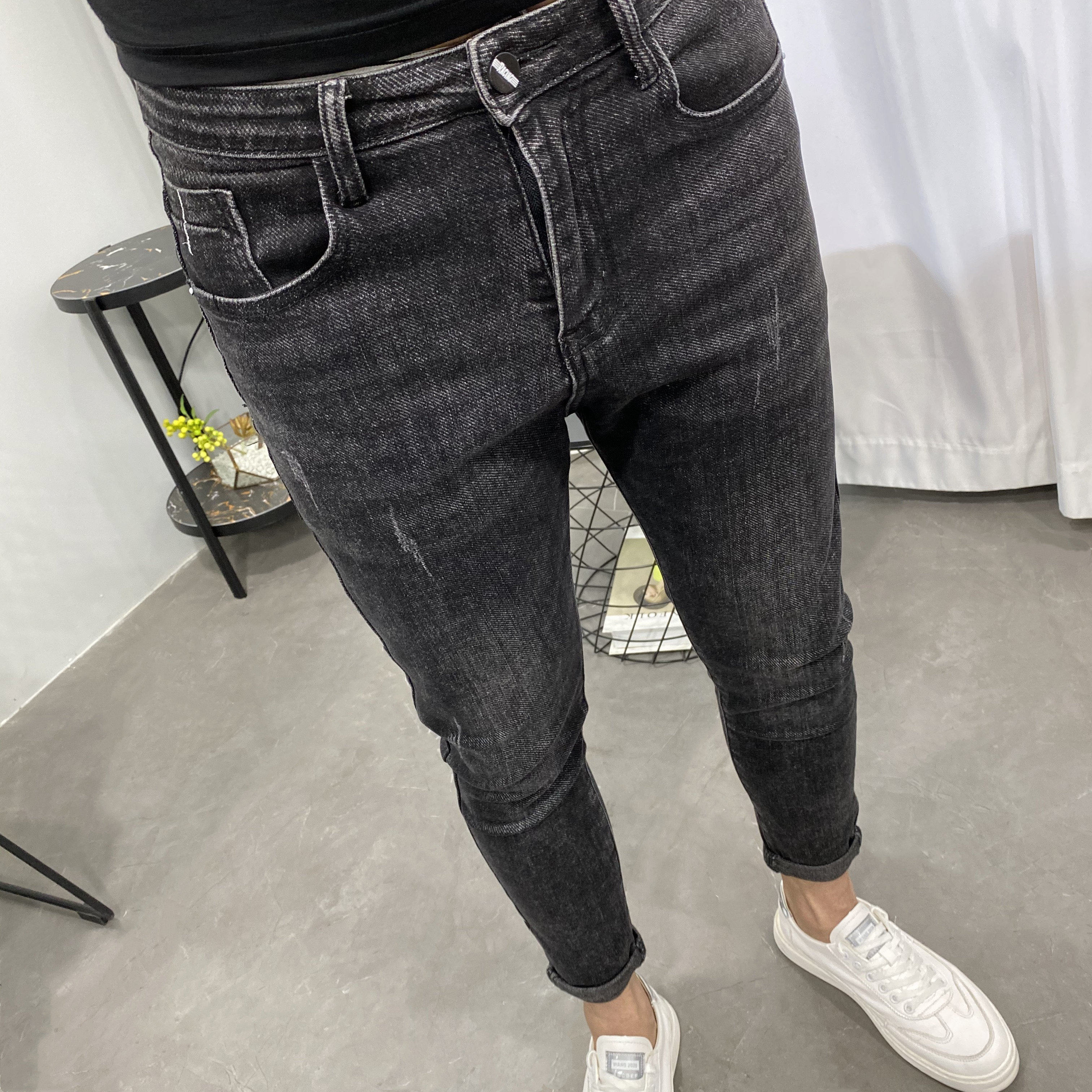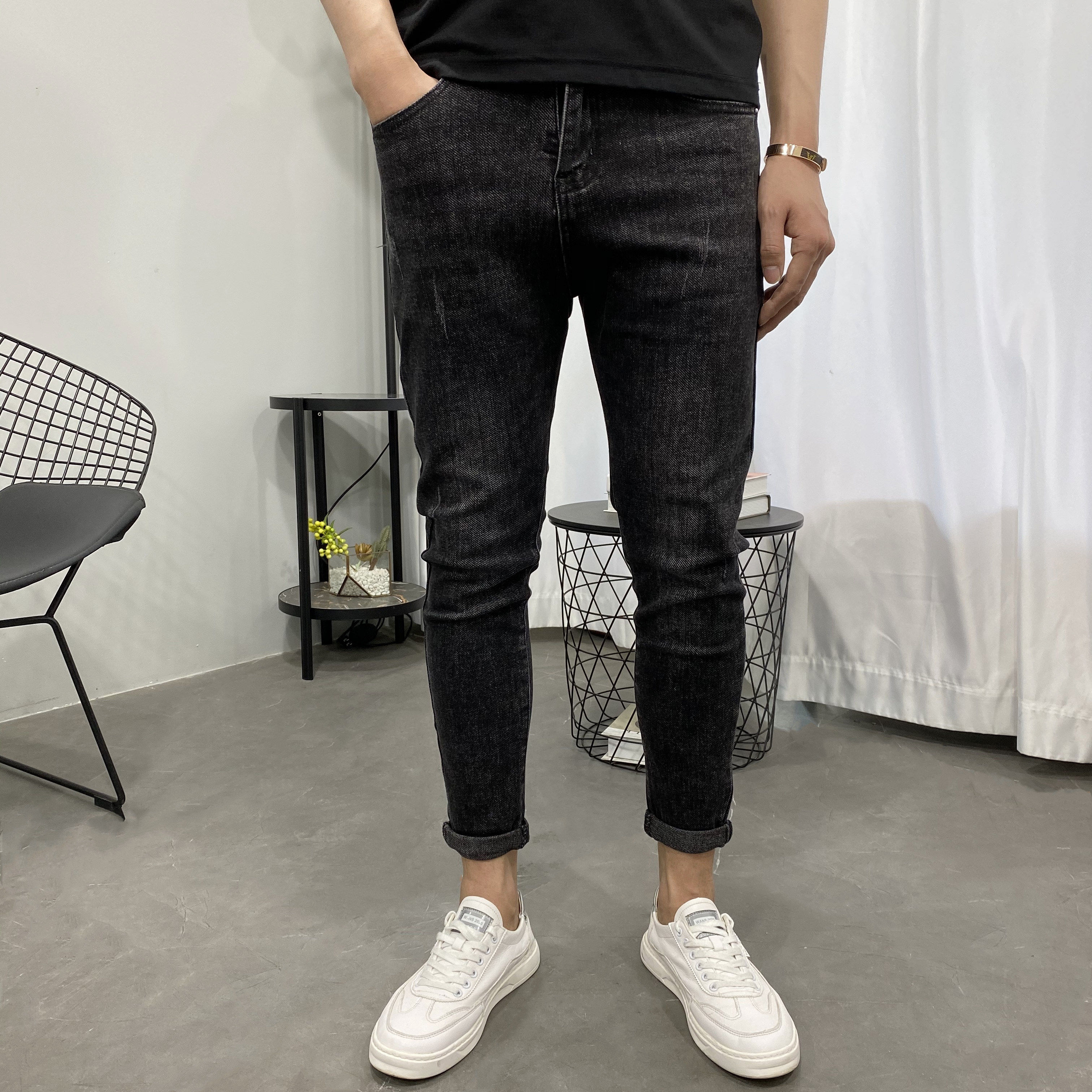 一条百搭的黑色小脚九分牛仔长裤男潮新美式弹力中低腰微跨老爹裤