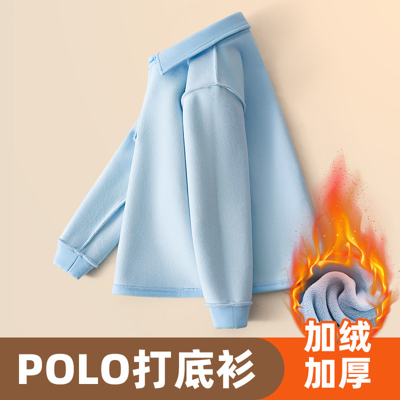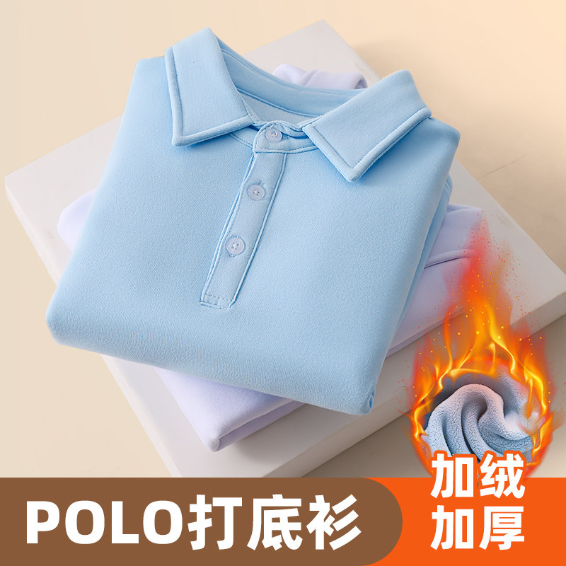 男童POLO衫加绒加厚纯棉长袖t恤儿童大童打底白色衬衫秋冬季校服