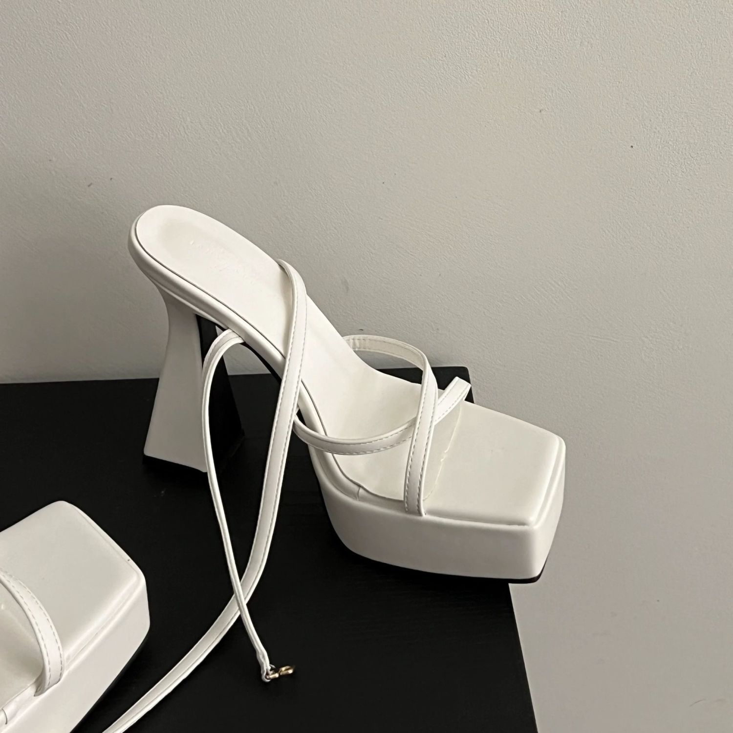 夏季新款防水台粗跟高跟鞋女一字带露趾方头小个子增高银色凉鞋