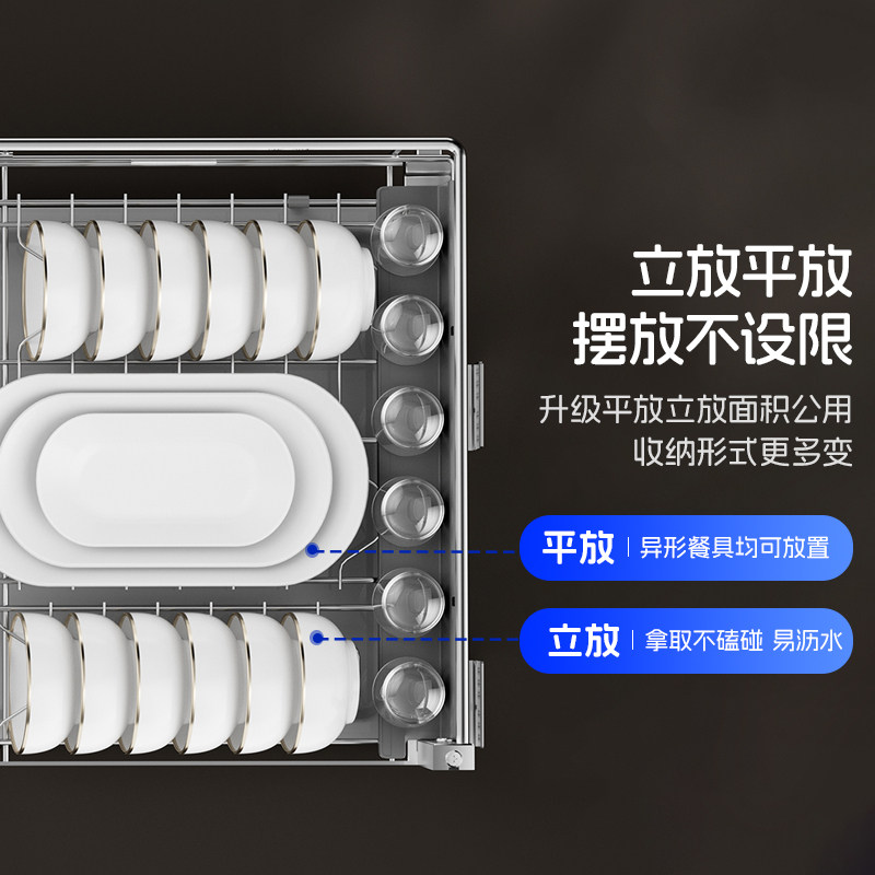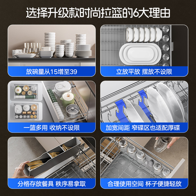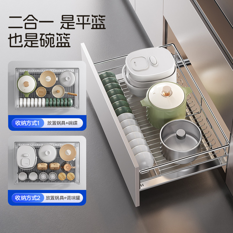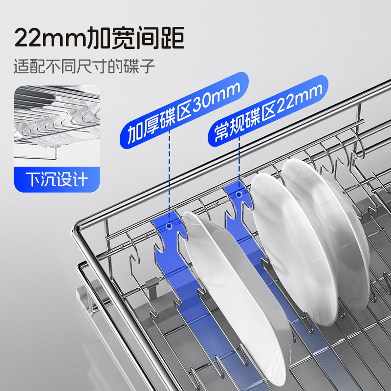 悍高拉篮时尚系列橱柜双层碗碟拉篮304不锈钢带阻尼缓冲厨房拉篮