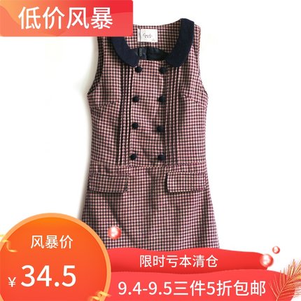 品牌撤柜 艾蜜X甜美小翻领英伦小格子粗花羊毛呢背心裙无袖连衣裙