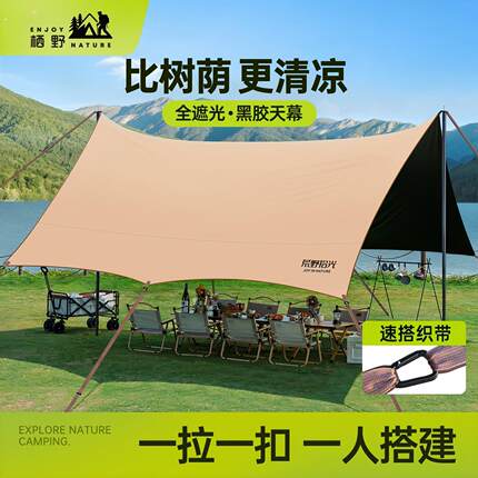黑胶天幕帐篷户外桌椅露营六件套免搭建野营防晒速开防风大遮阳棚