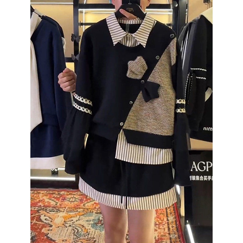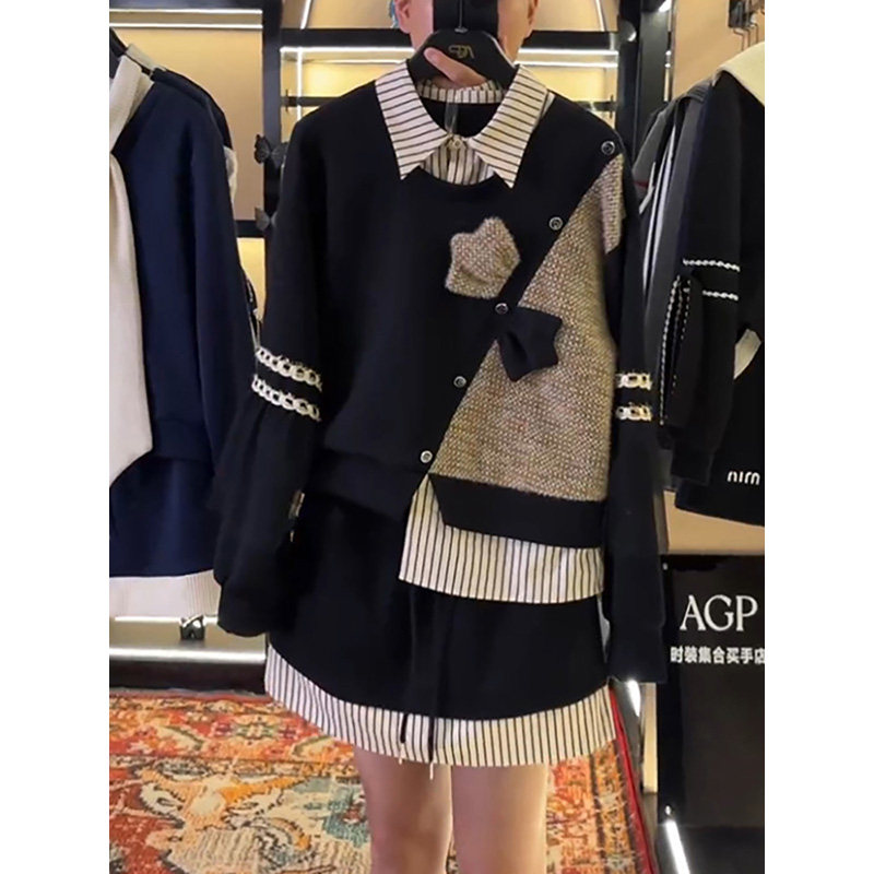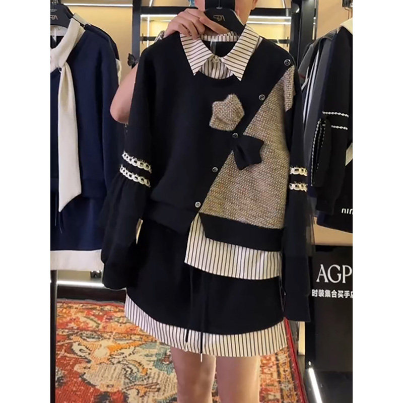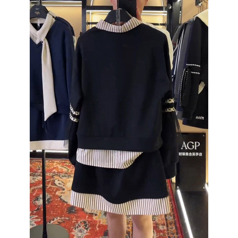 韩版时尚潮流套装裙2025秋冬新款气质名媛百搭假两件卫衣+半身裙