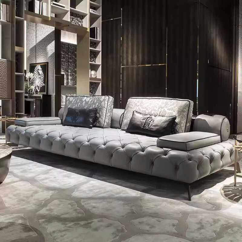 意式轻奢范思哲拉扣磨砂真皮沙发后现代设计师定制别墅大平层沙发