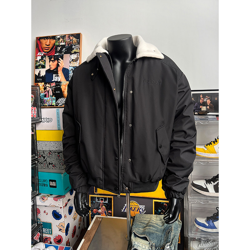 男士冬季羊羔毛翻领工装短款棉服军绿色复古刺绣字母加厚外套潮流