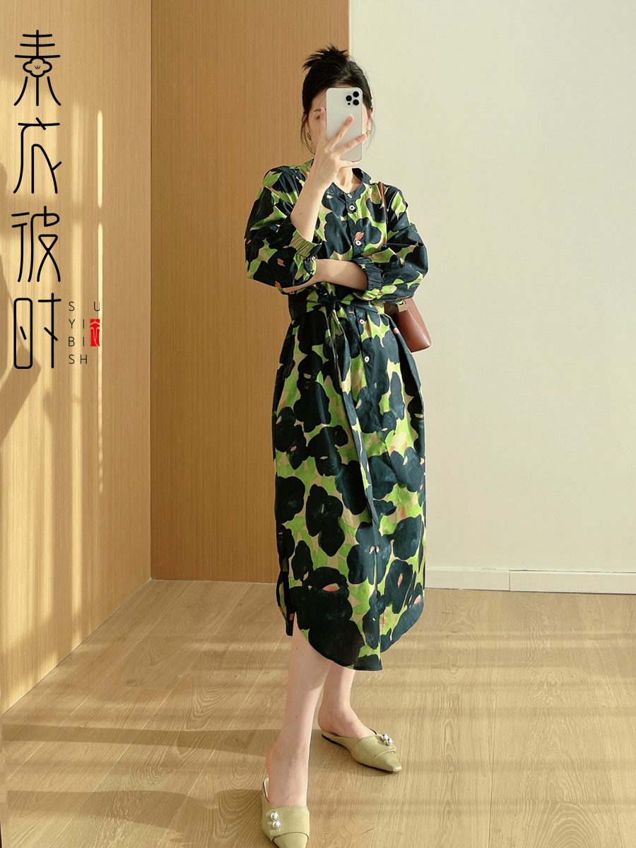 素衣彼时2346夏季直筒系带女衬衫裙服装纸样中长款连衣裙裁剪样板