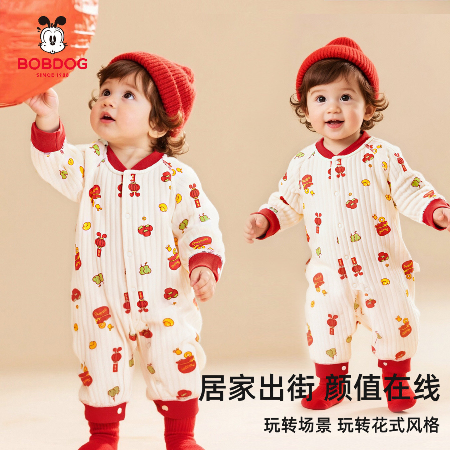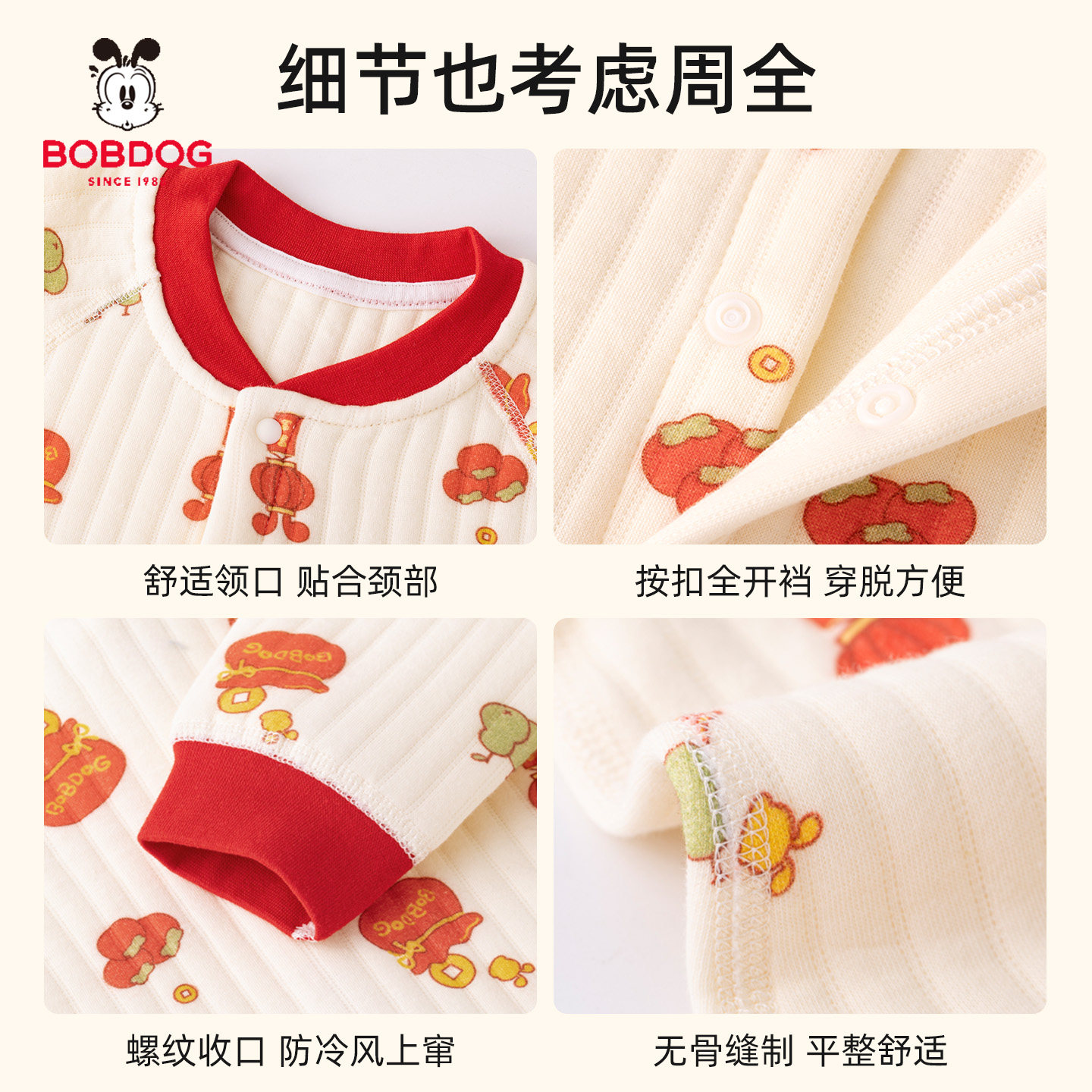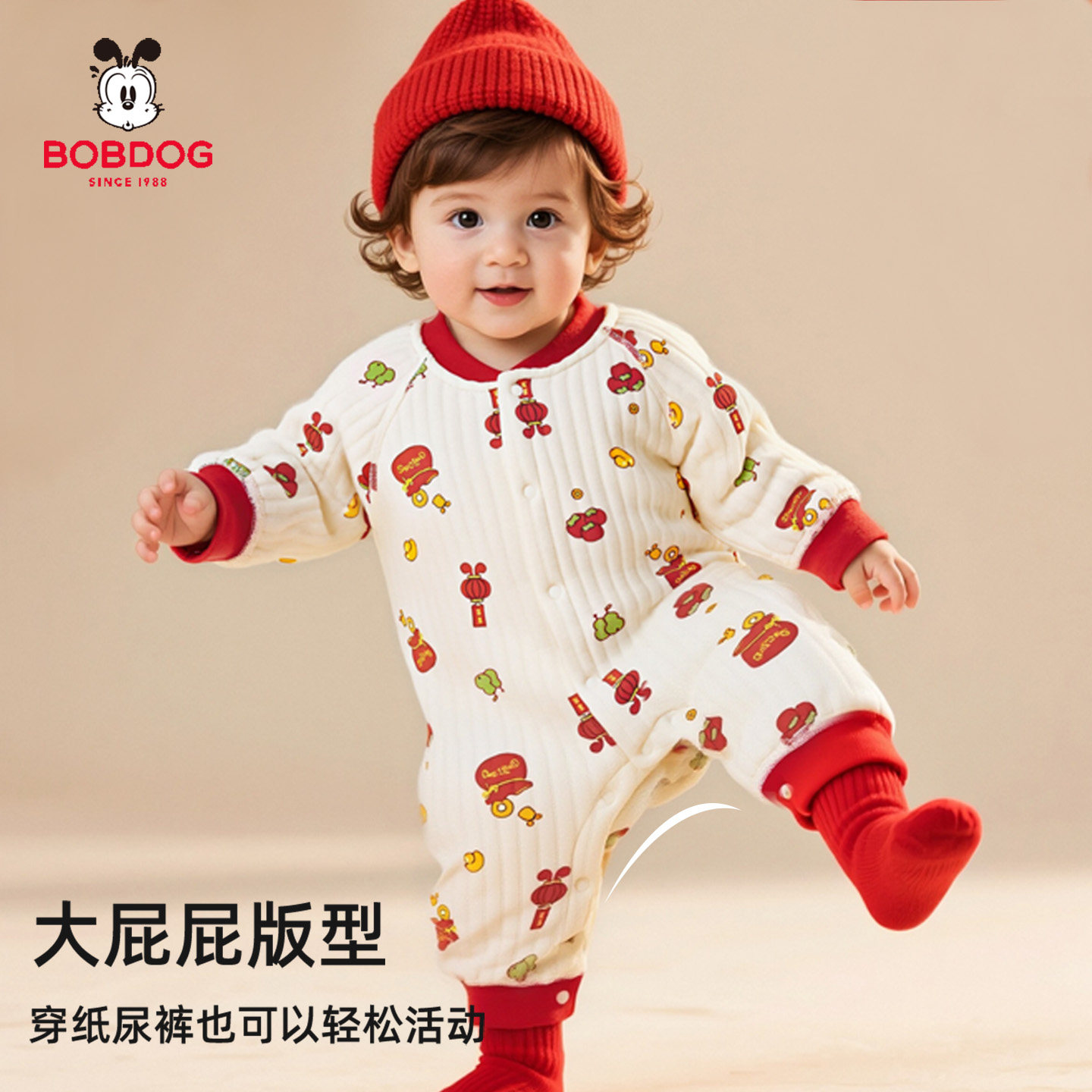 巴布豆婴儿连体衣夹棉