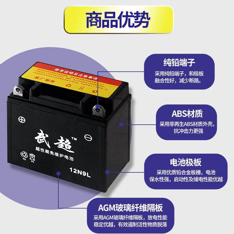 摩托车电瓶12V通用9a7a5a蓄干电池125助力踏板弯梁车12伏免维护