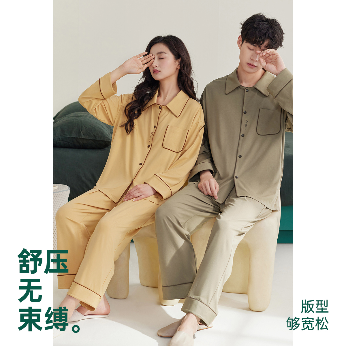 安之伴【巨柔软】莫代尔春秋款情侣睡衣女长袖套装休闲男士家居服