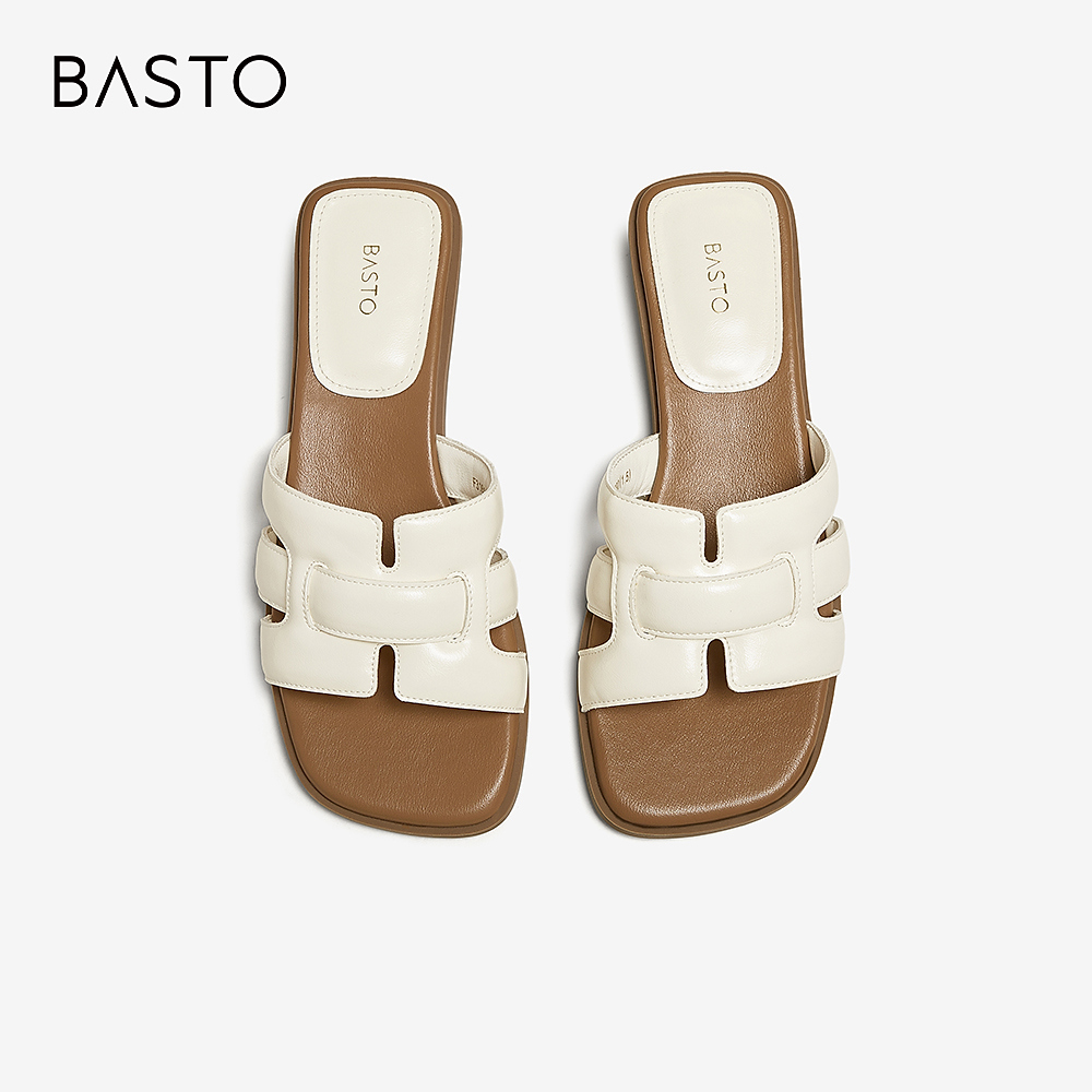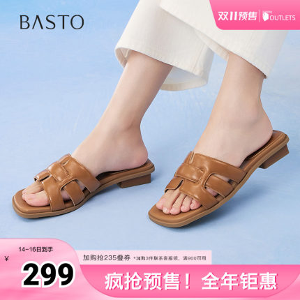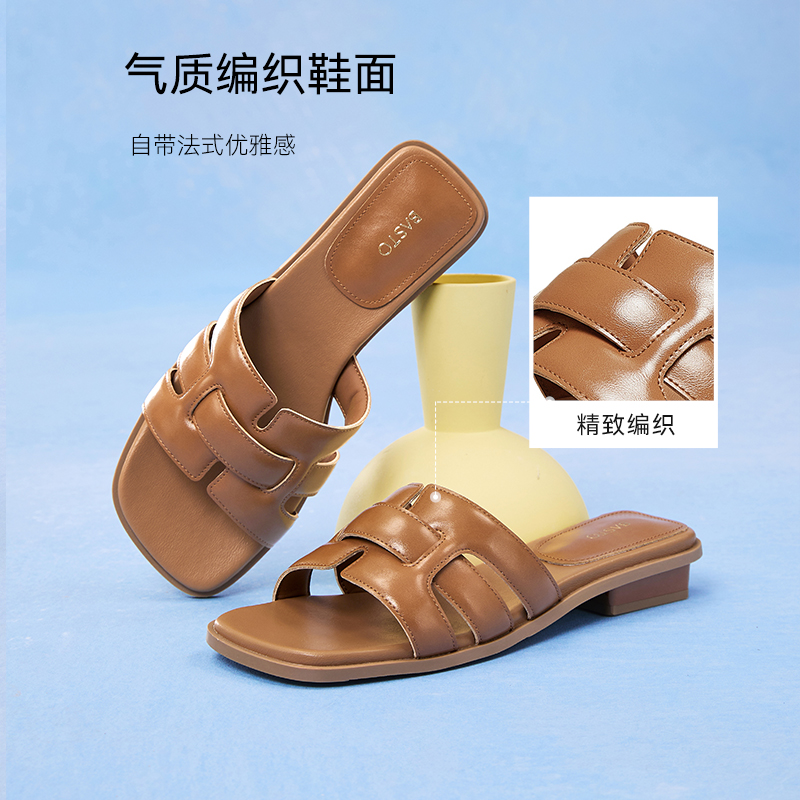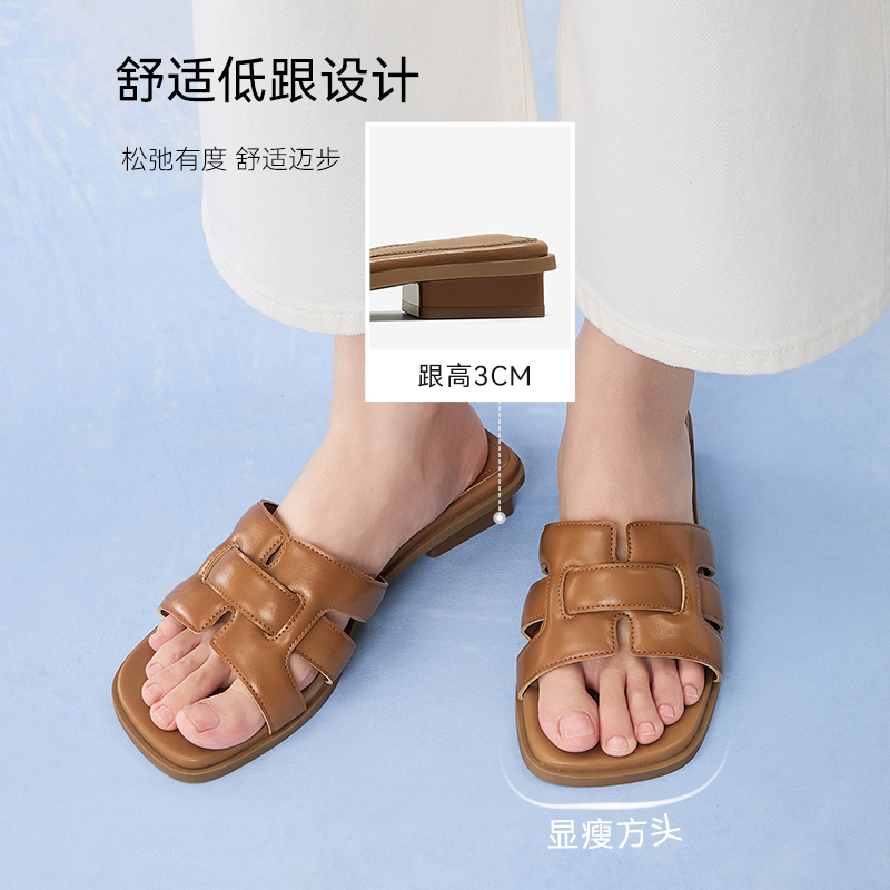 百思图2025夏季新款商场同款一字拖简约休闲粗跟女拖鞋F3161BT5