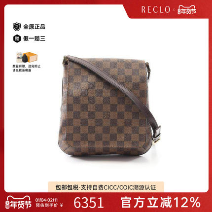 中古LV路易威登女包B级9新musette王菲包涂层防水帆布斜挎包棕色