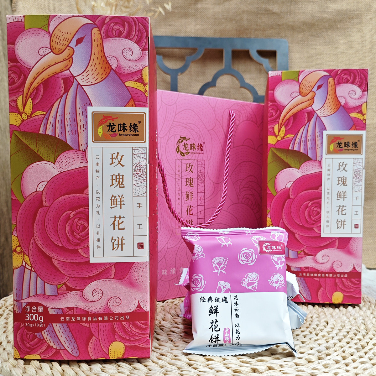 玫瑰鲜花饼礼盒装大理伴手礼现烤正宗云南丽江手工特产送礼龙味缘