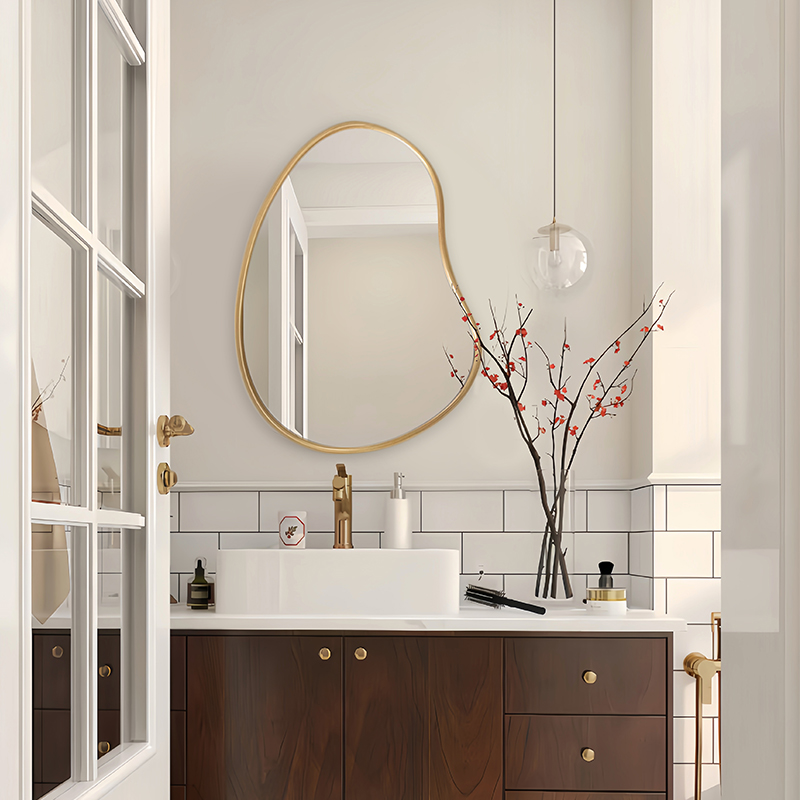 北欧家用智能浴室镜简约壁挂卧室梳妆镜芒果造型装饰镜民宿玄关镜