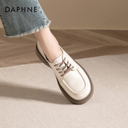 达芙妮乐福鞋女2026新款春季单鞋英伦风复古白色小皮鞋女厚底女鞋
