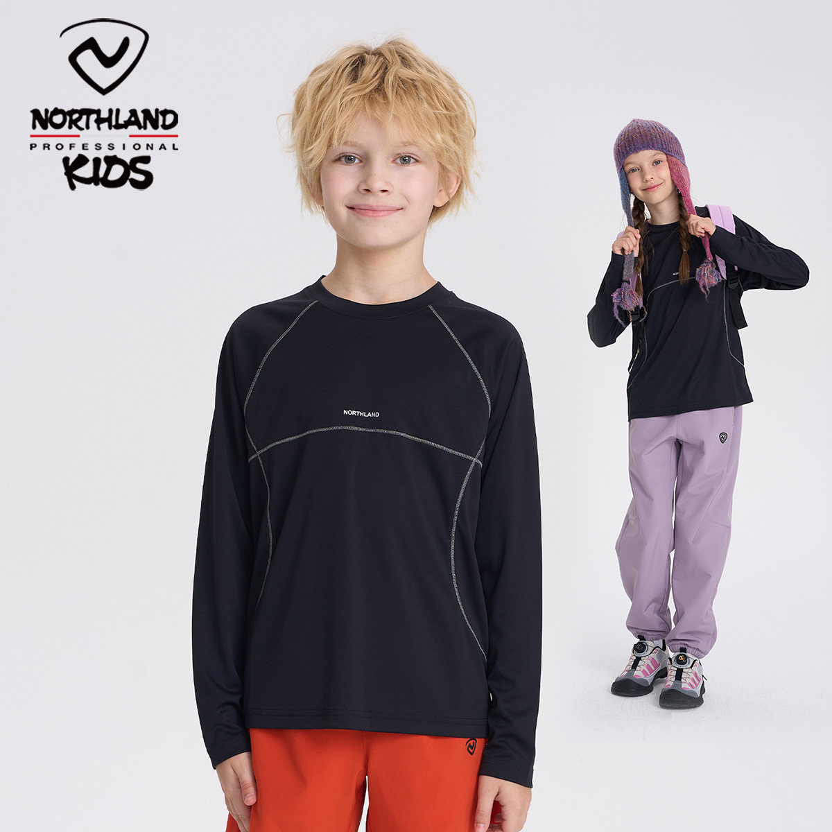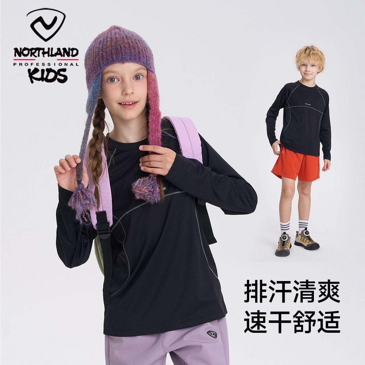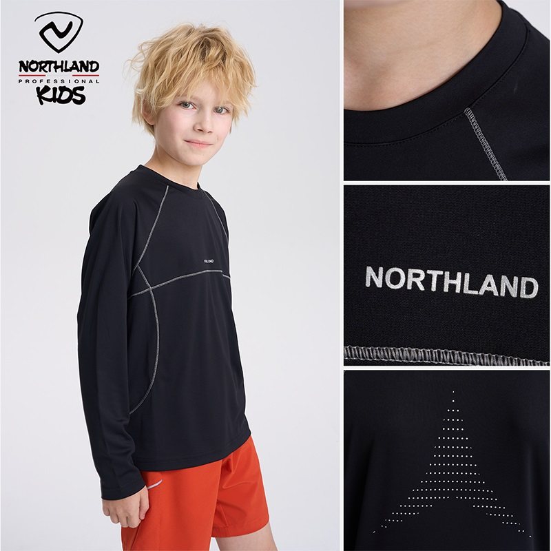 诺诗兰儿童长袖t恤男童女童速干圆领上衣2025秋季新款运动打底衫