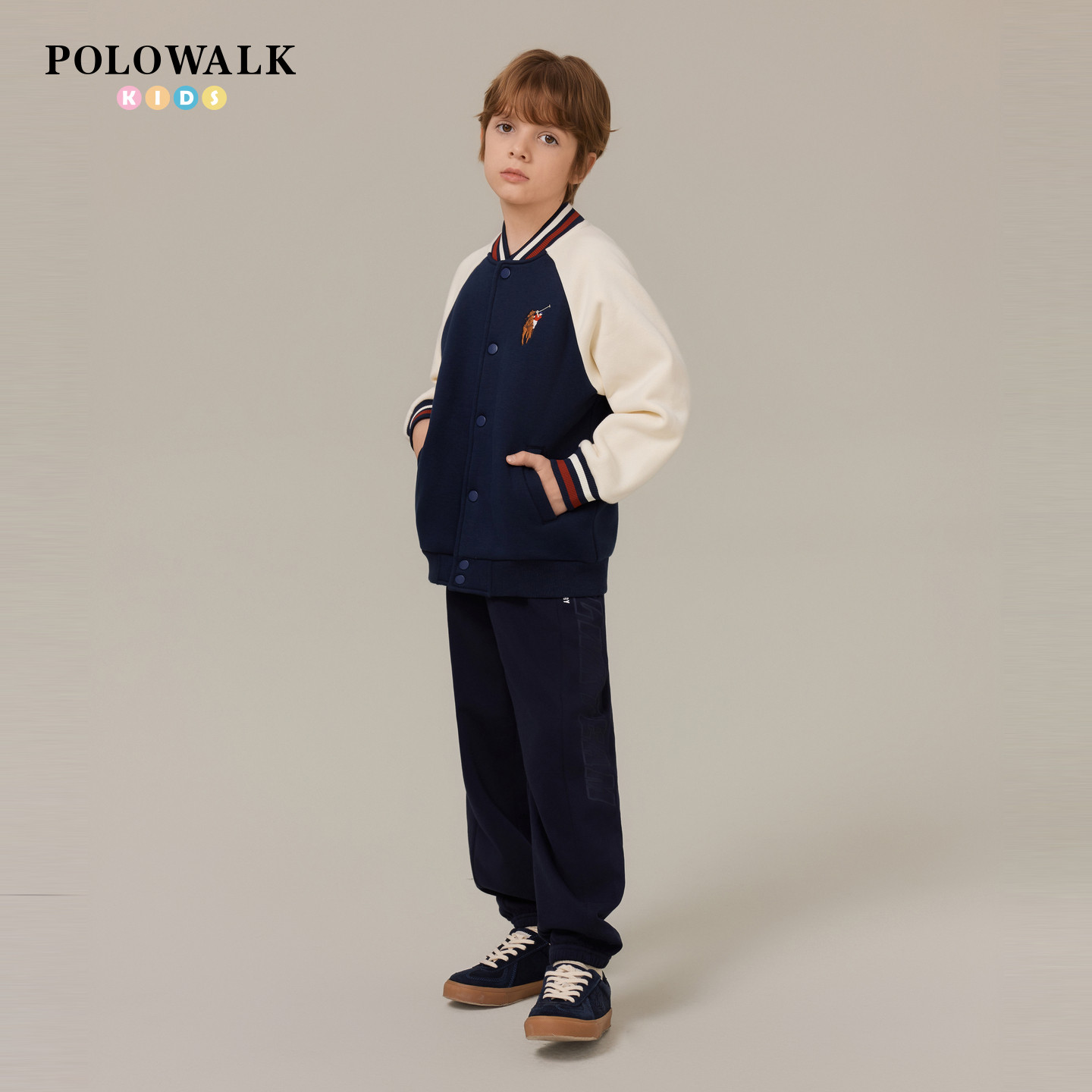 POLOWALK童装男女童外套25秋冬新款学院风夹克加绒撞色保暖棒球服