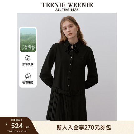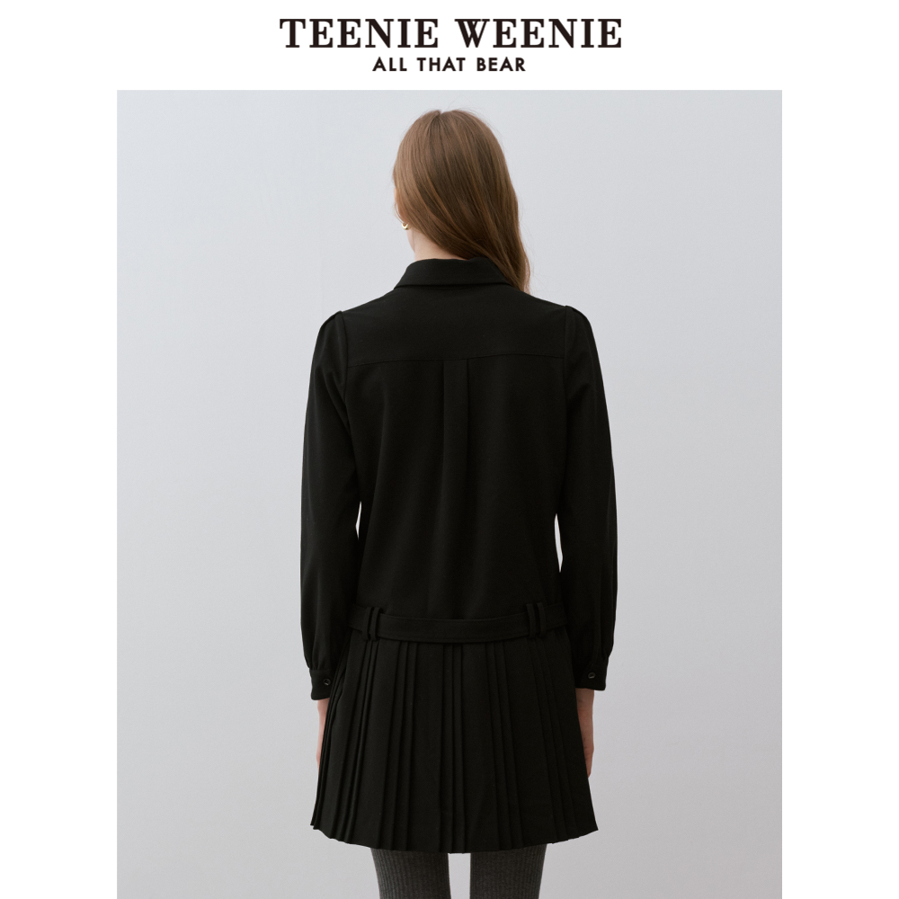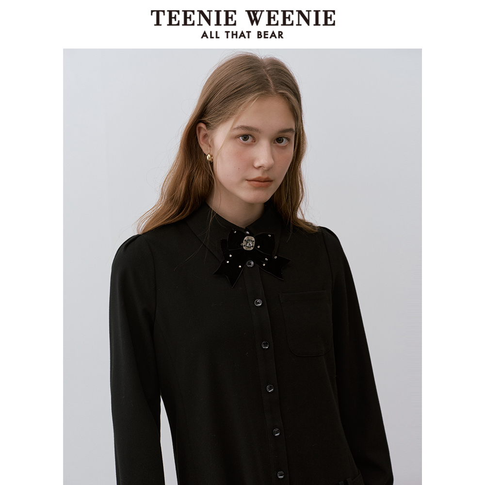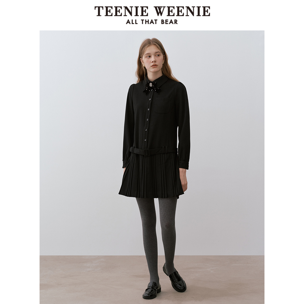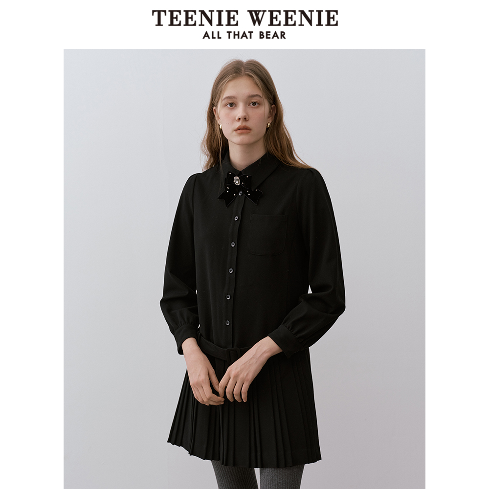 TeenieWeenie小熊女装连衣裙冬季新款翻领可拆卸镶钻胸针裙子