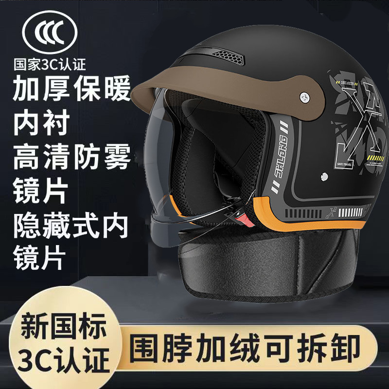 国标3C认证电动电瓶车头盔男女士四季通用帽冬季保暖四分之三半盔