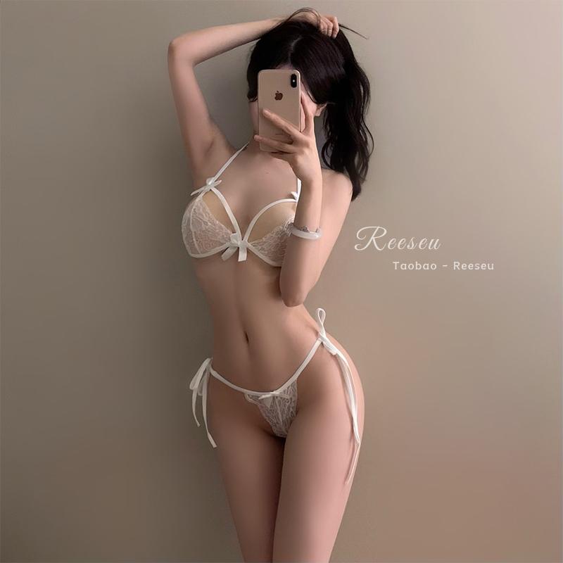 迷情罂粟*性感蕾丝蝴蝶结镂空内衣诱惑文胸红色春夏丁字裤套装女