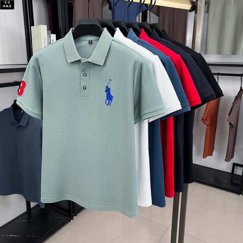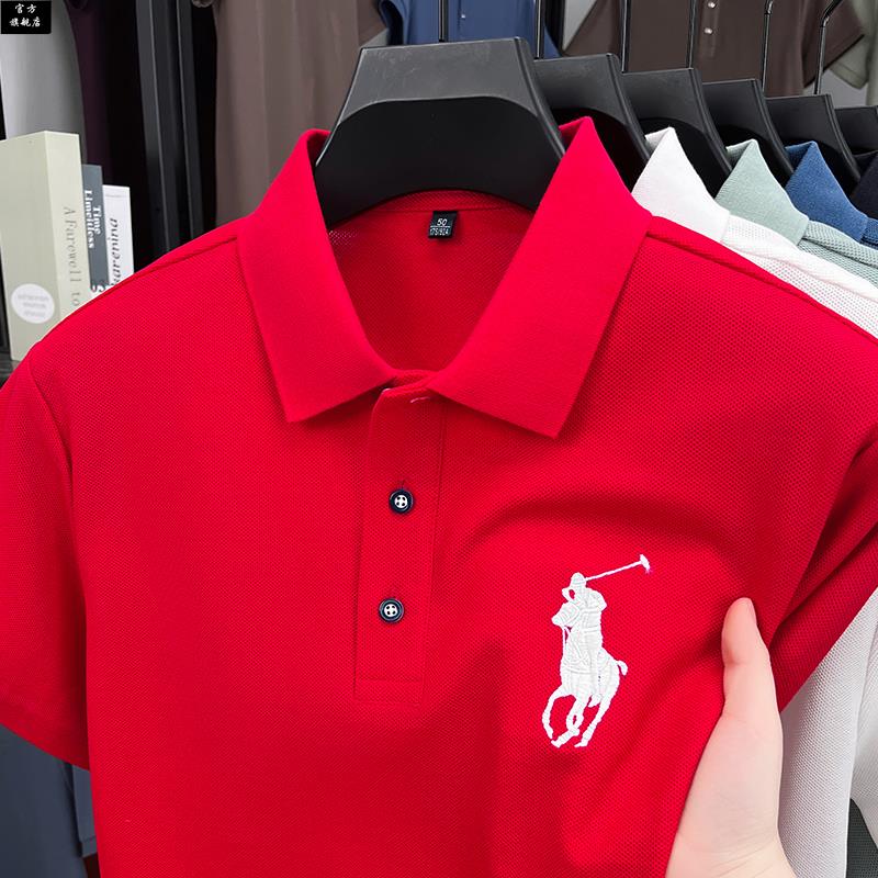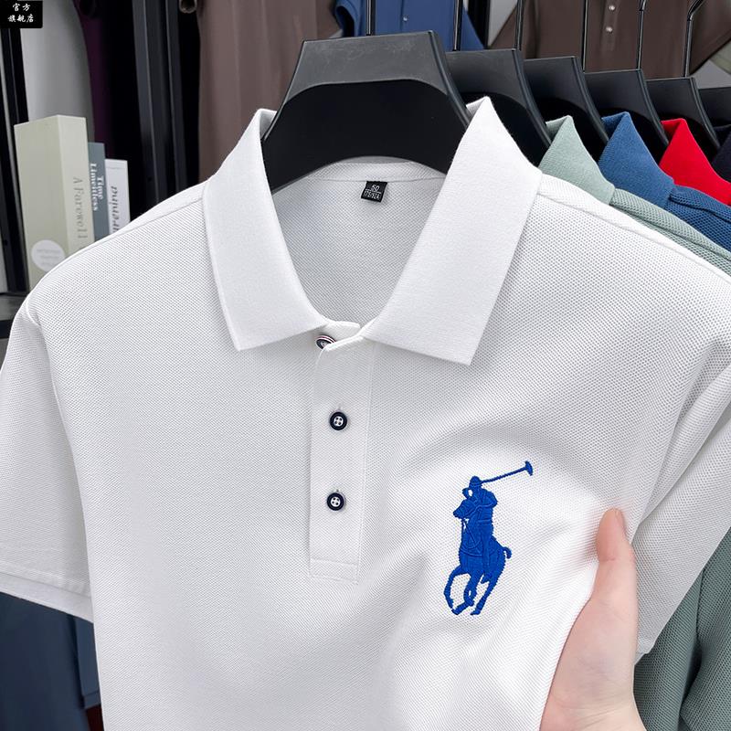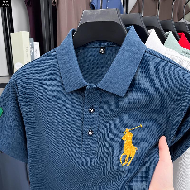 保罗官方刺绣100%丝光棉中年男士短袖t恤衫高端马标polo衫上衣服