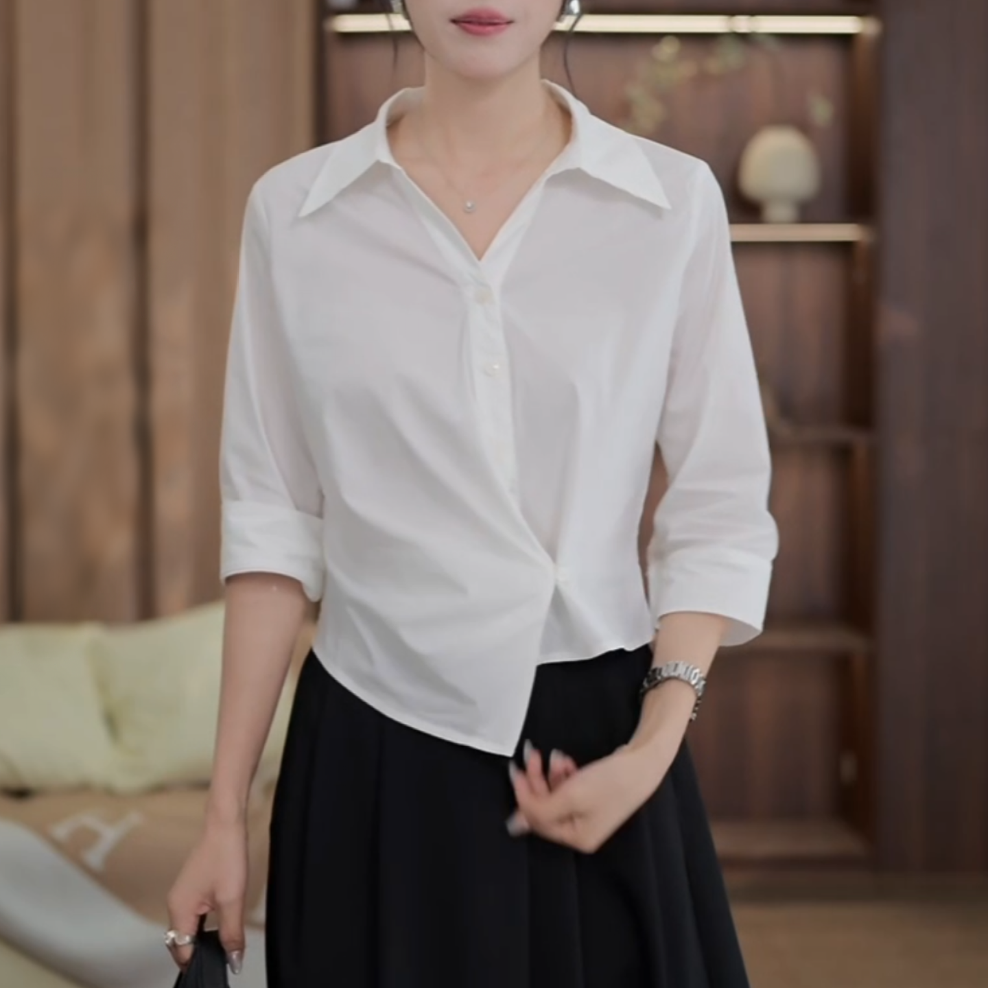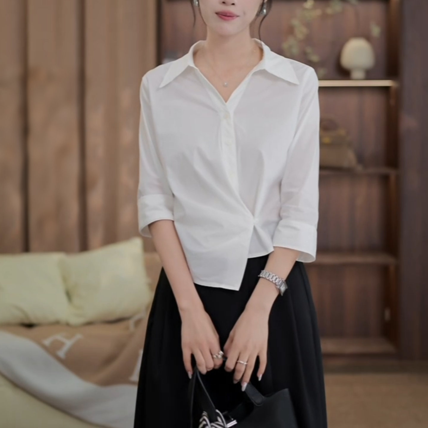 韩版气质通勤显瘦白色衬衫女装2025早秋新款时尚收腰百搭衬衣上衣