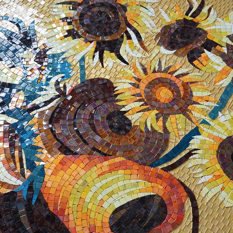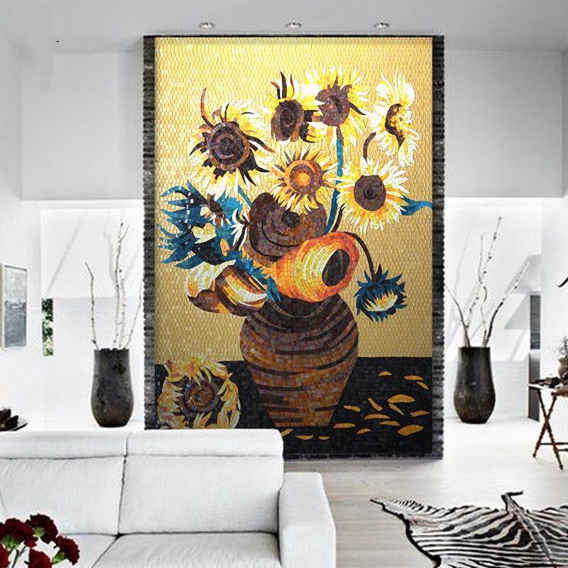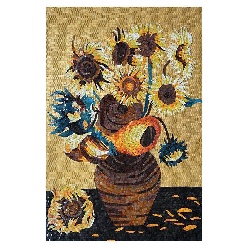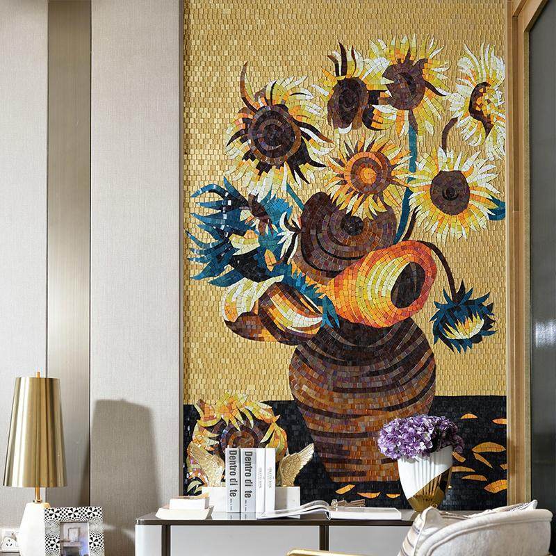 马赛克背景墙美式艺术梵高向日葵油画拼图客厅玄关剪画过道瓷砖