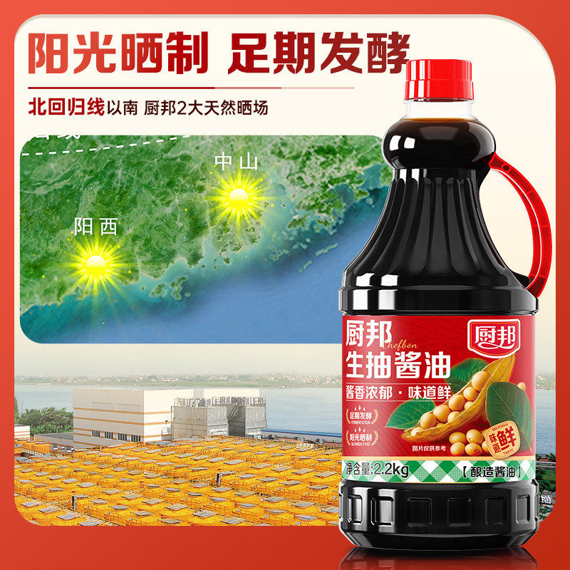 【芭芭农场】厨邦生抽酱油2.2kg黄豆酿造酱油家用炒菜提鲜调味品