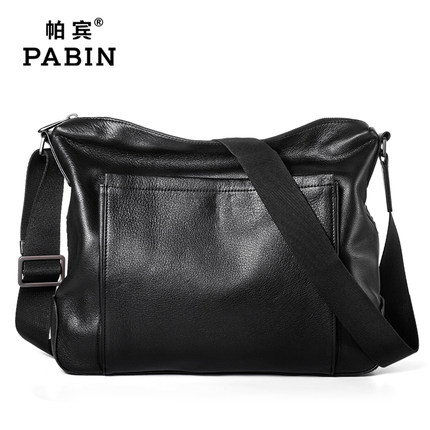 帕宾真皮男包单肩包男斜挎包商务休闲邮差包男士包包牛皮背包潮