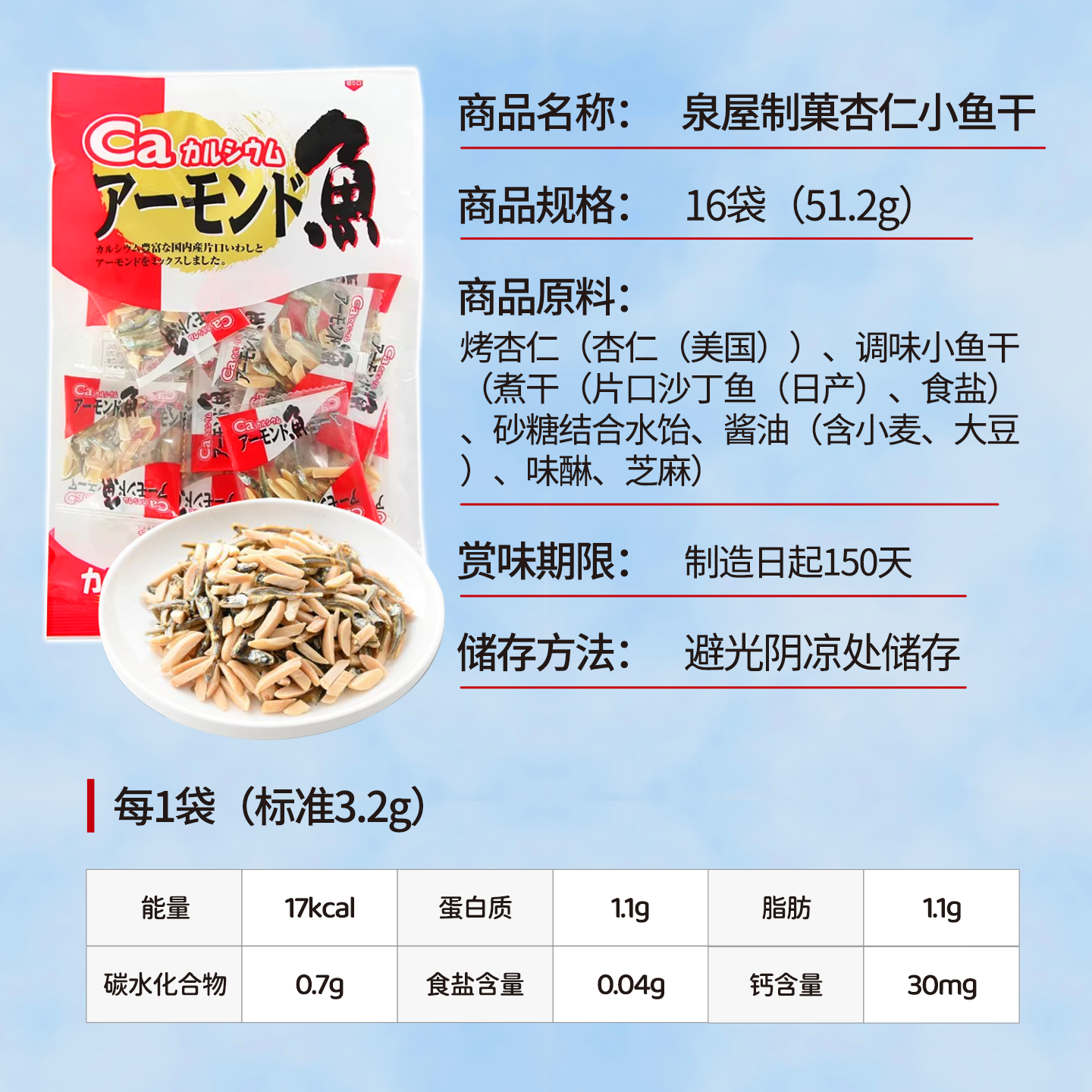 泉屋制菓总本铺日本进口芝麻小鱼干杏仁小鱼干沙丁鱼干即食鱼零食