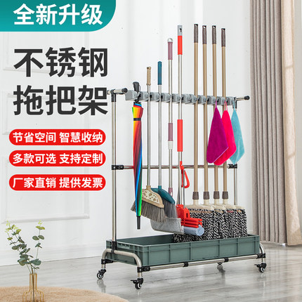 不锈钢拖把架可移动落地式扫把挂架置物架子墩布挂钩收纳清洁工具
