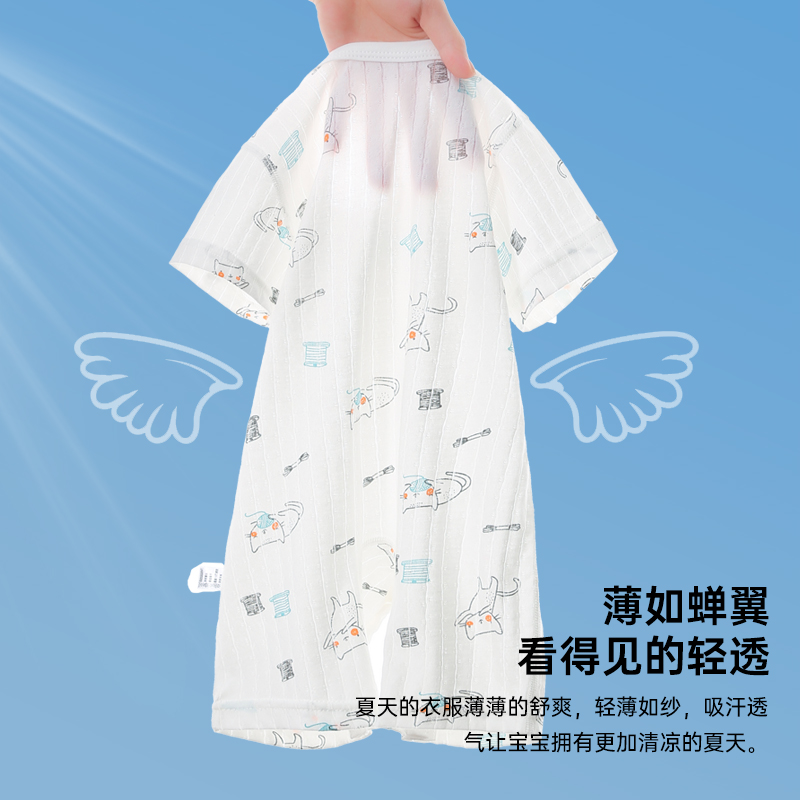 婴儿连体衣服夏季睡衣薄款男宝宝女夏天纯棉短袖哈衣新生幼儿夏装
