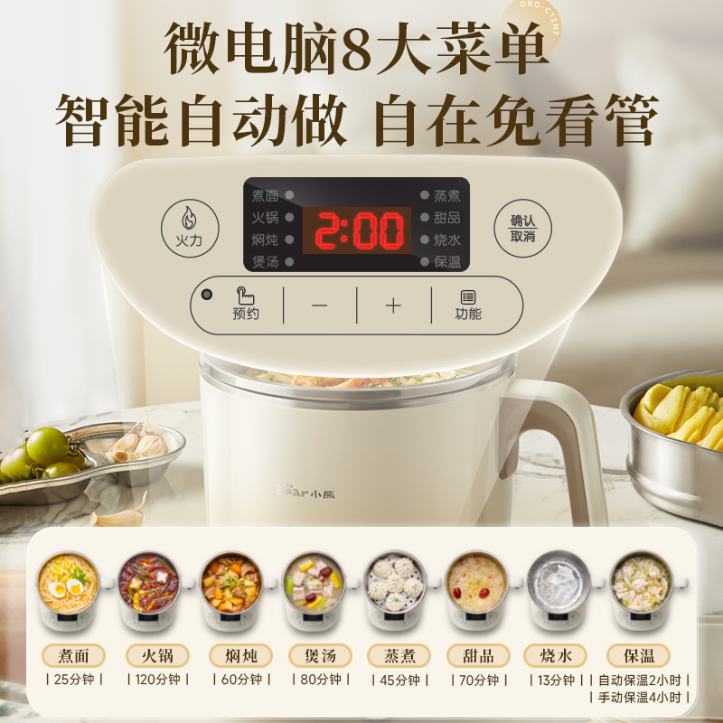 小熊分体式电煮锅304不锈钢小型电锅蒸煮多功能家用一体锅电火锅