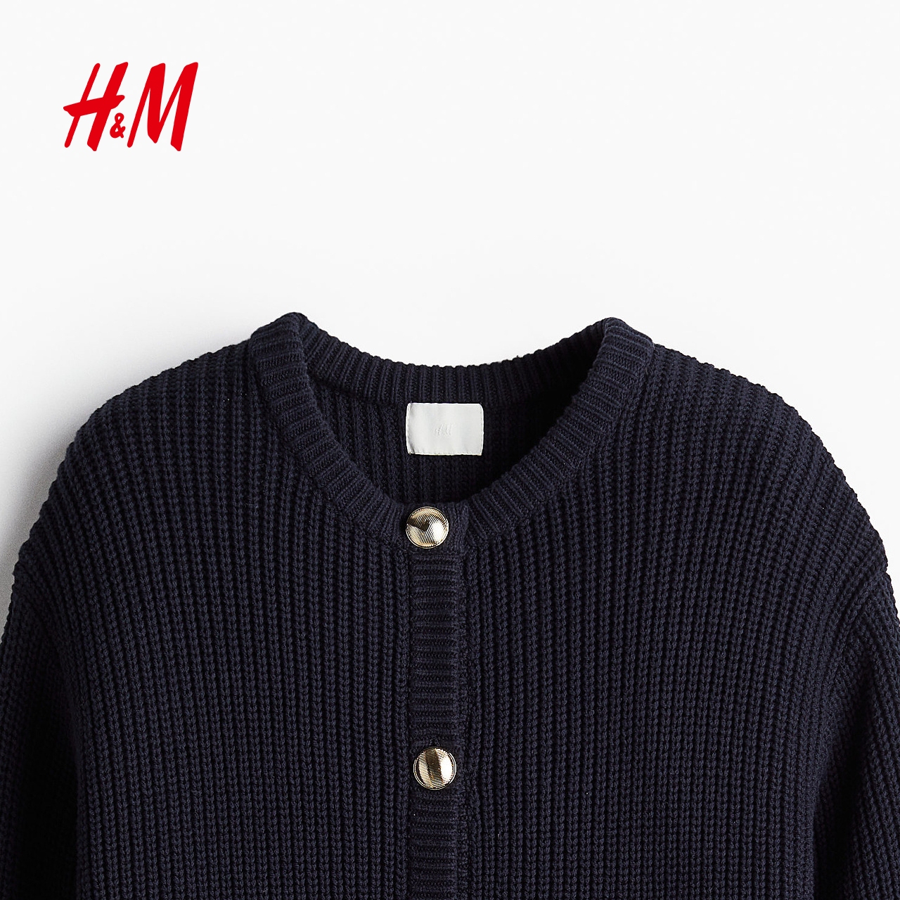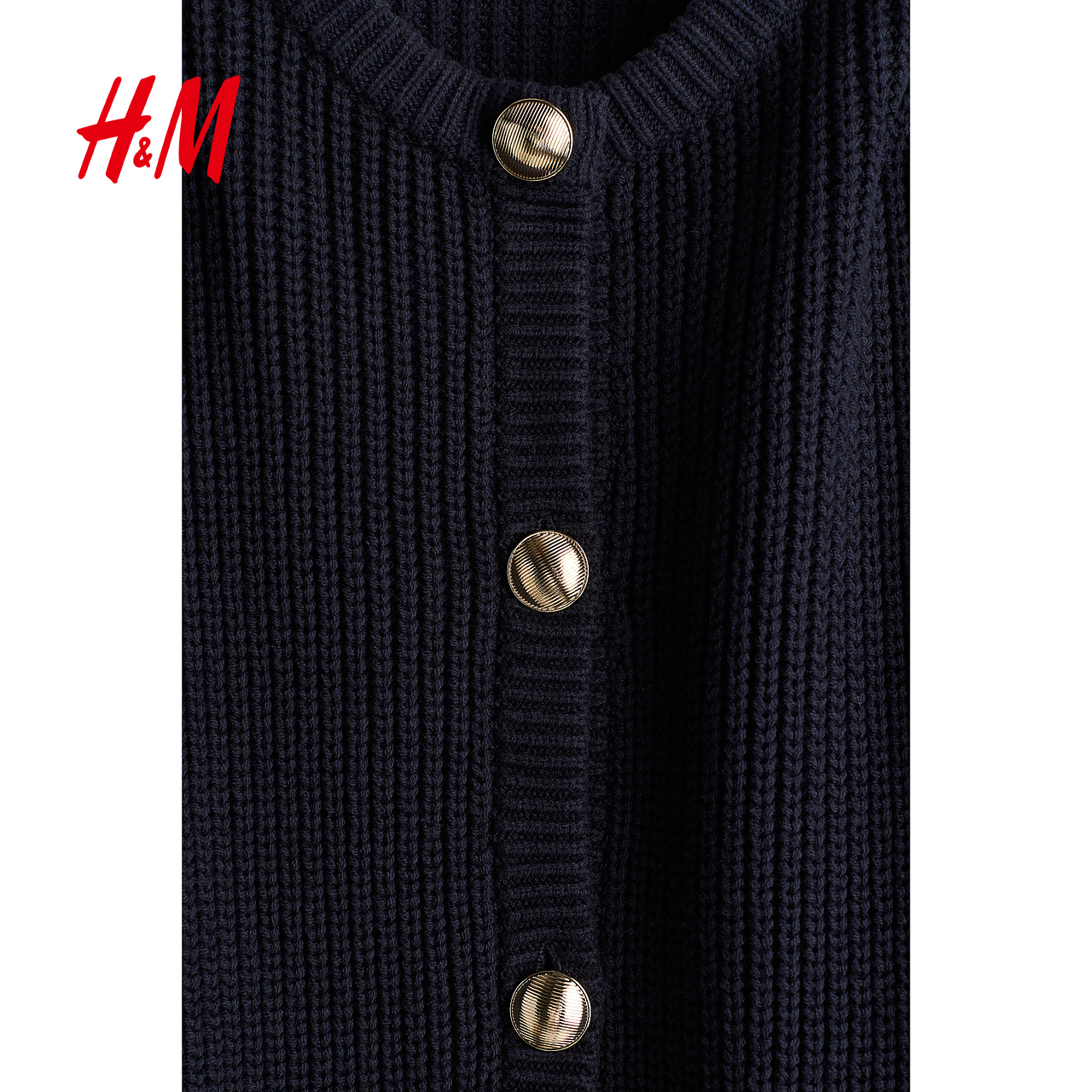 HM女装毛针织衫秋季圆领休闲宽松长袖中长款开衫1242243