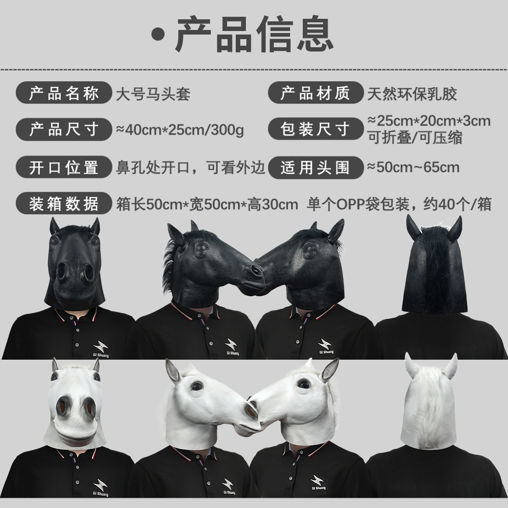 可爱大号马头动物头套化妆舞会搞笑直播面具万圣节日派对表演道具