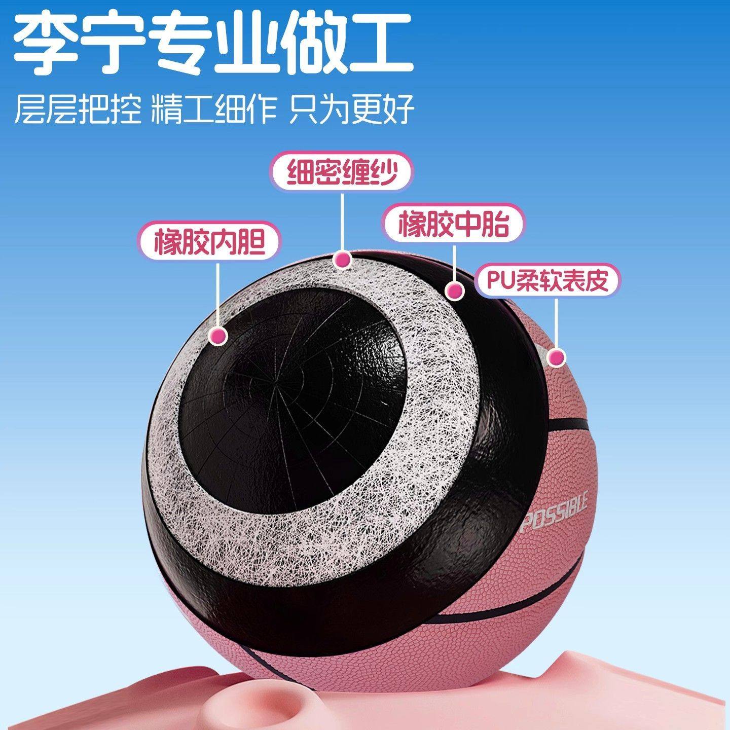 李宁篮球正品彩色PU篮球小学生初中生专用5号7号儿童幼儿园礼物女