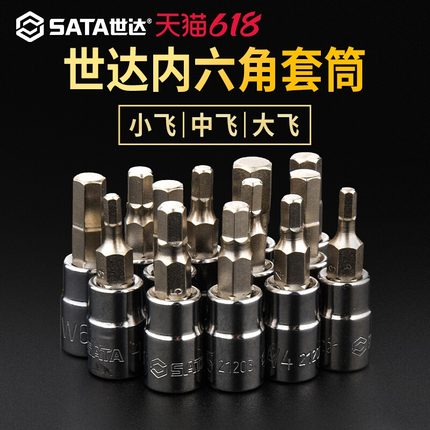 SATA世达内六角旋具套筒六方棱螺丝刀批头小飞中大飞压批压胚头