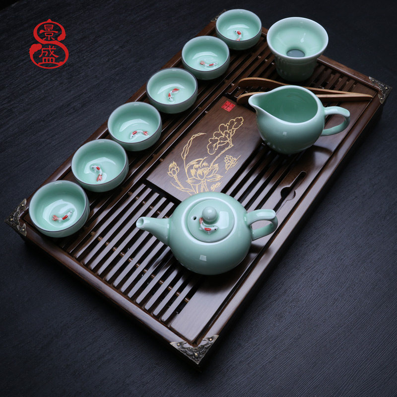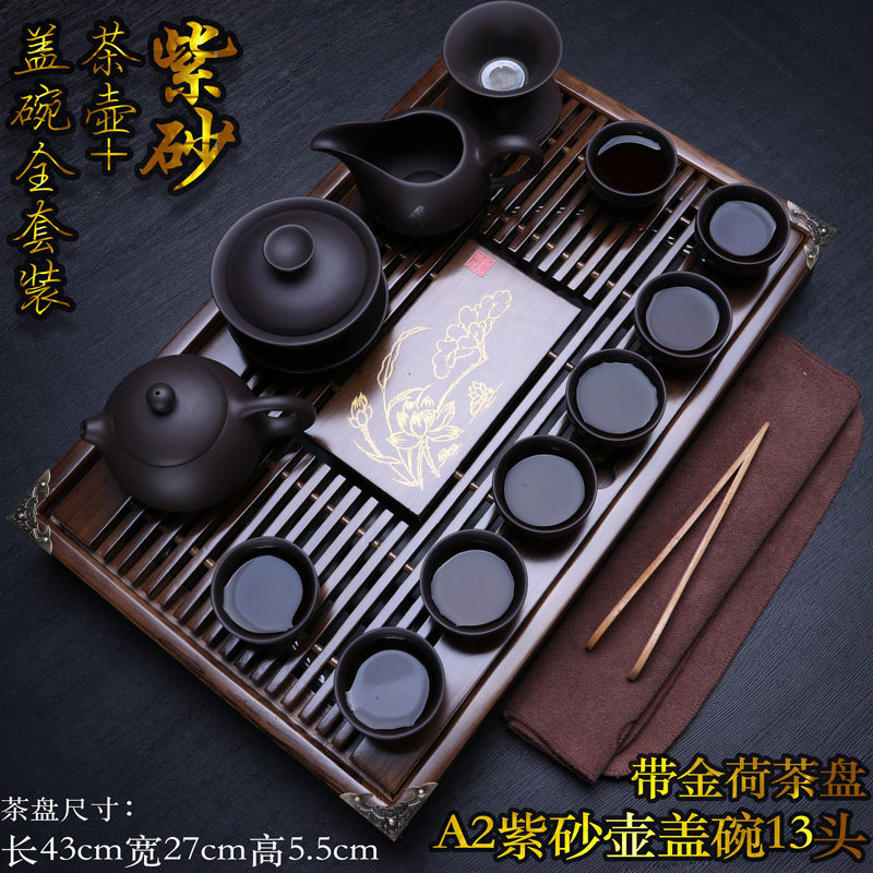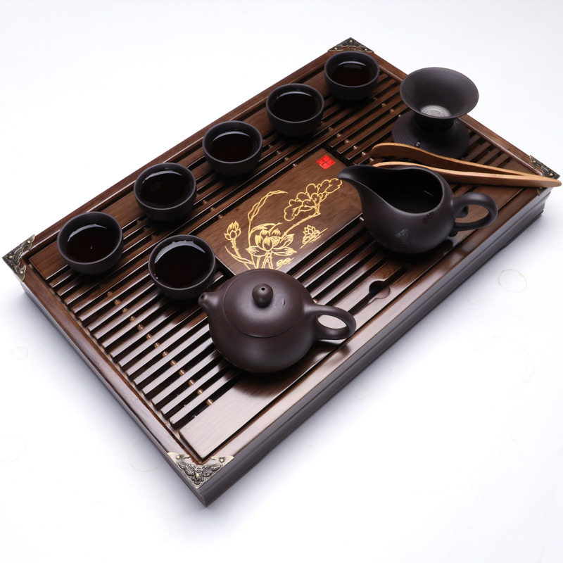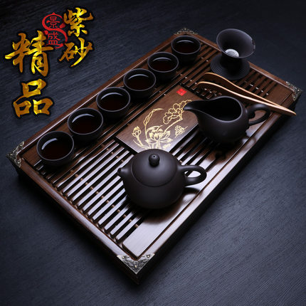 景盛高档宜兴断水紫砂茶壶茶具套装实木茶盘礼品定制logo刻字家用