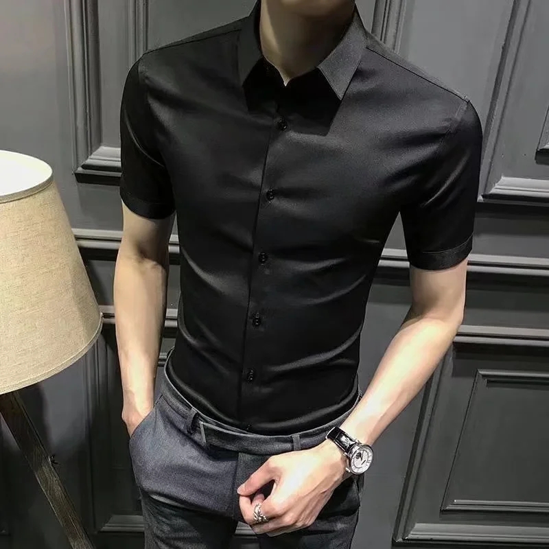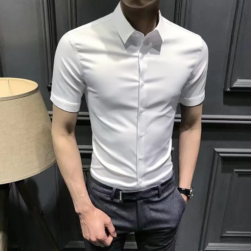 春秋季休闲长袖衬衫男士纯色短袖寸衫韩版修身商务正装打底白衬衣