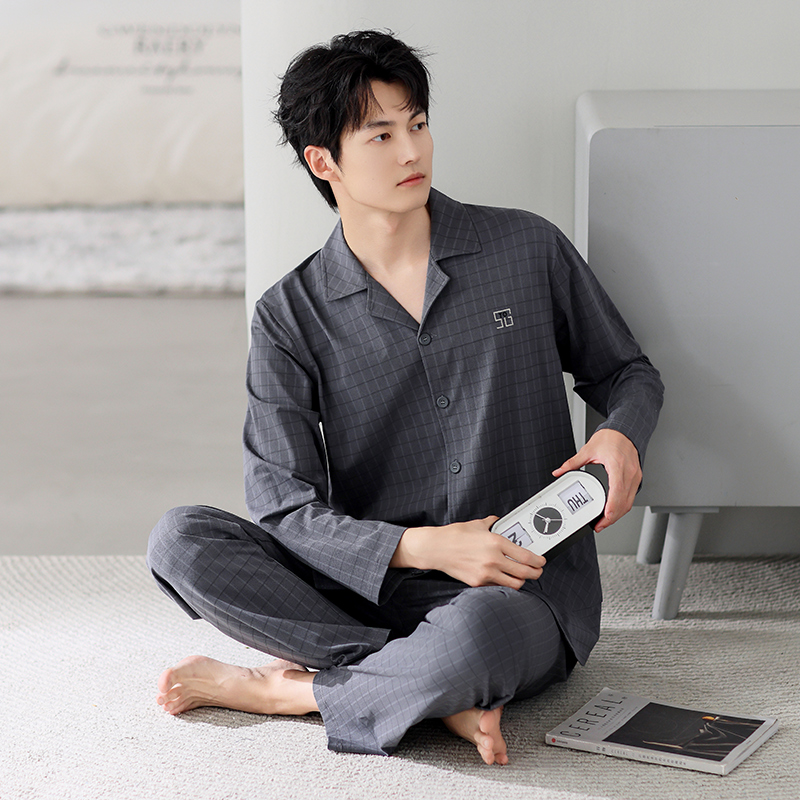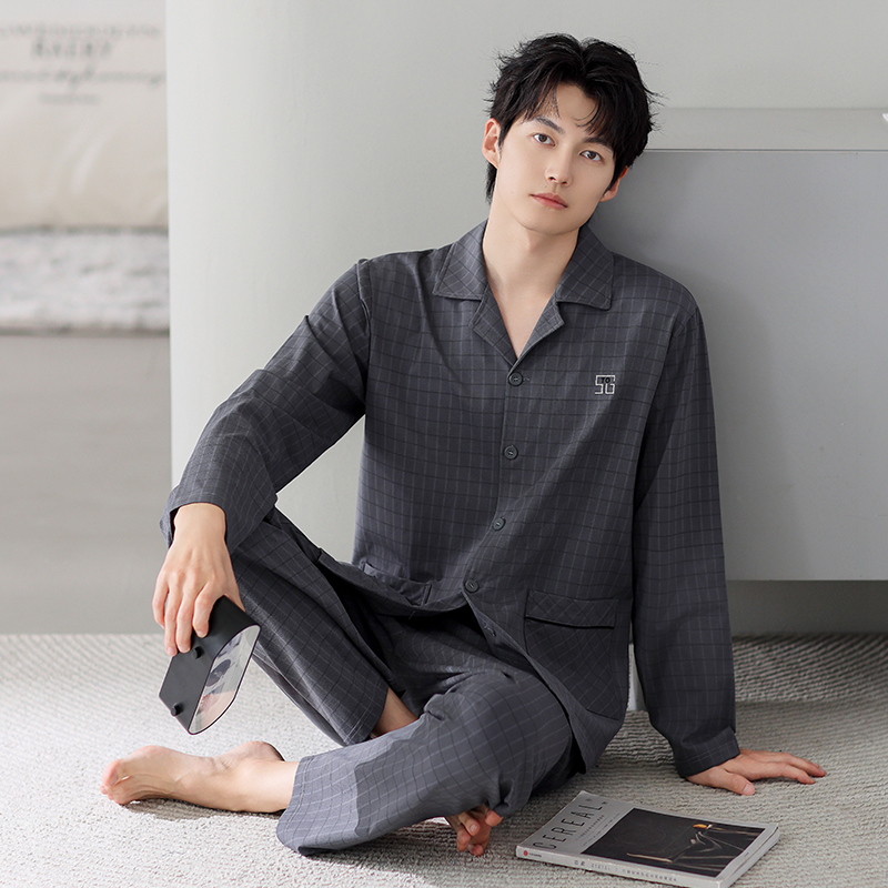 娇蒂姿纯棉睡衣男秋季长袖套装