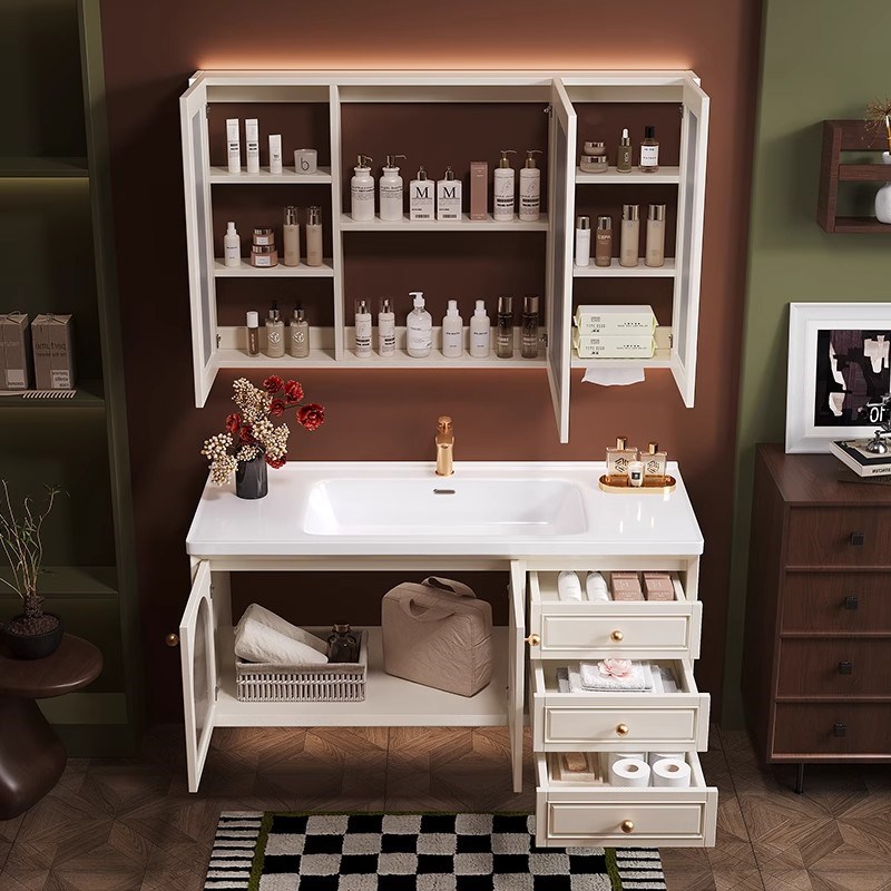 2025新款美式实木浴室柜组合卫生间洗手台洗脸盆柜一体陶瓷盆简约