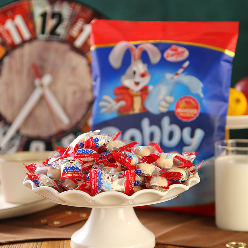 俄罗斯进口馆牛奶糖原装进口拉迈尔牌罗比兔500g袋装休闲零食礼品