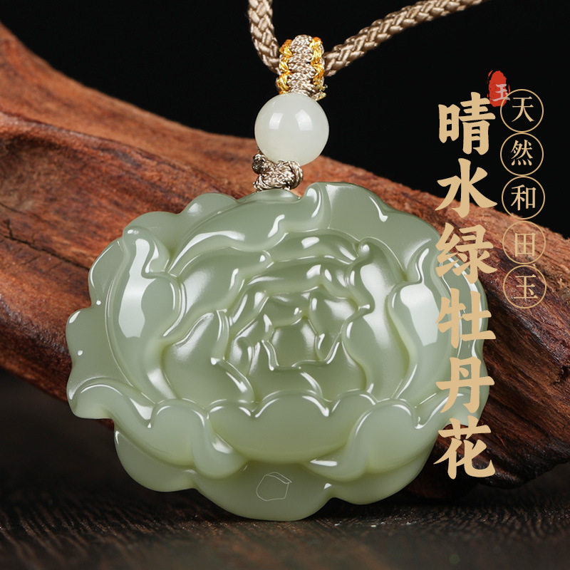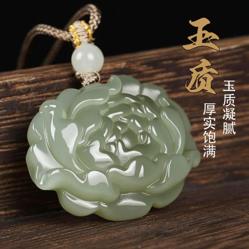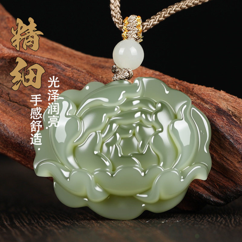 唐今玉天然和田玉莲花吊坠花开富贵荷花玉项链青莲玉坠男女款挂件