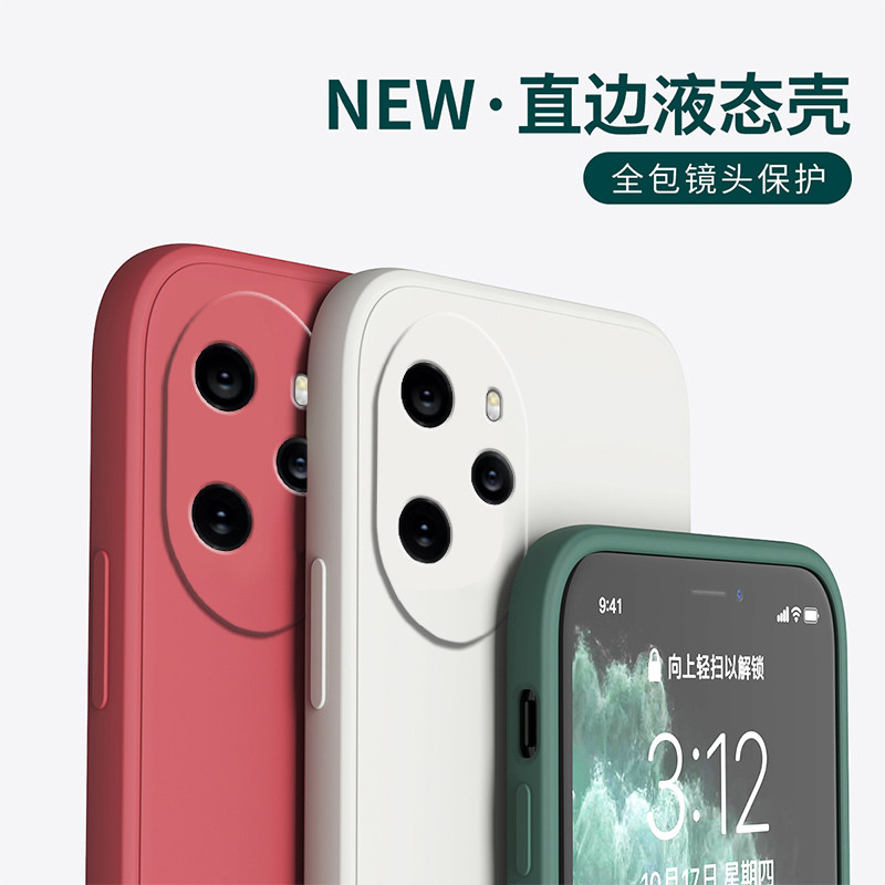 适用荣耀100手机壳新款100pro保护套honor液态硅胶MAA一AN00直边全包软壳AN10防摔外壳por男女1OO钢化膜