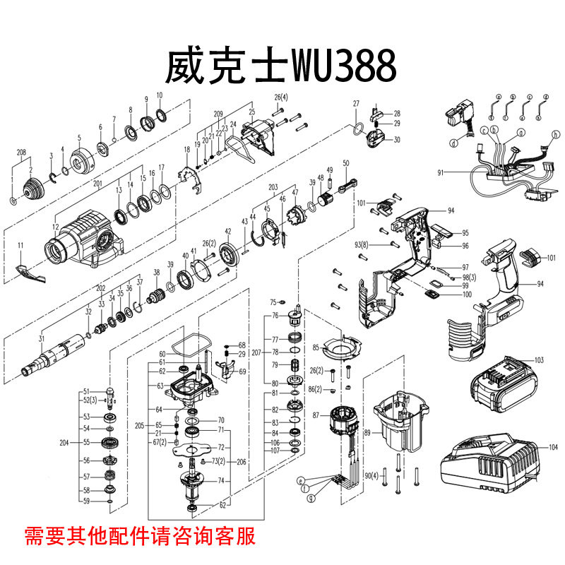 威克士WU388电锤原装配件 活塞 连杆转套 机壳 转子定子 滑套齿轮