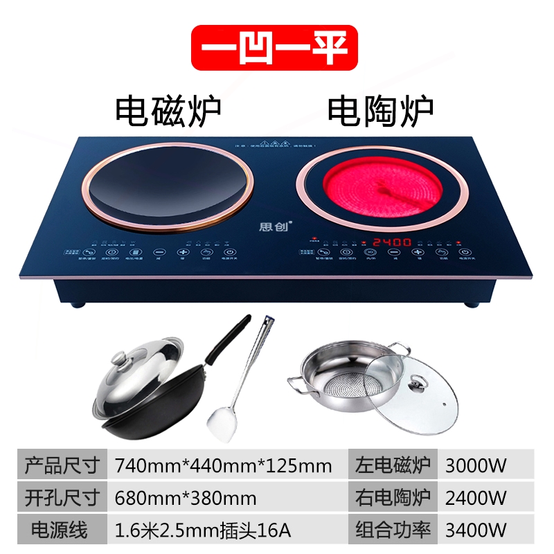 用思创嵌入式电磁炉双头电陶炉双灶台式双炉双眼大功率商用智能家